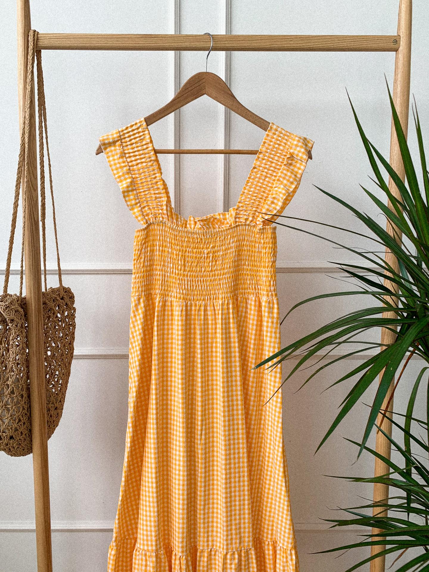 Nuevo vestido con fruncido en nido de abeja y volantes en bajo y tirantes.