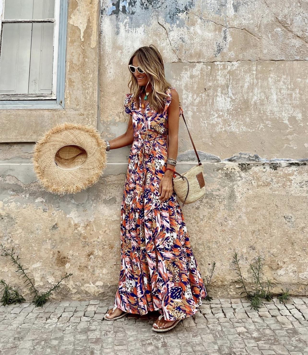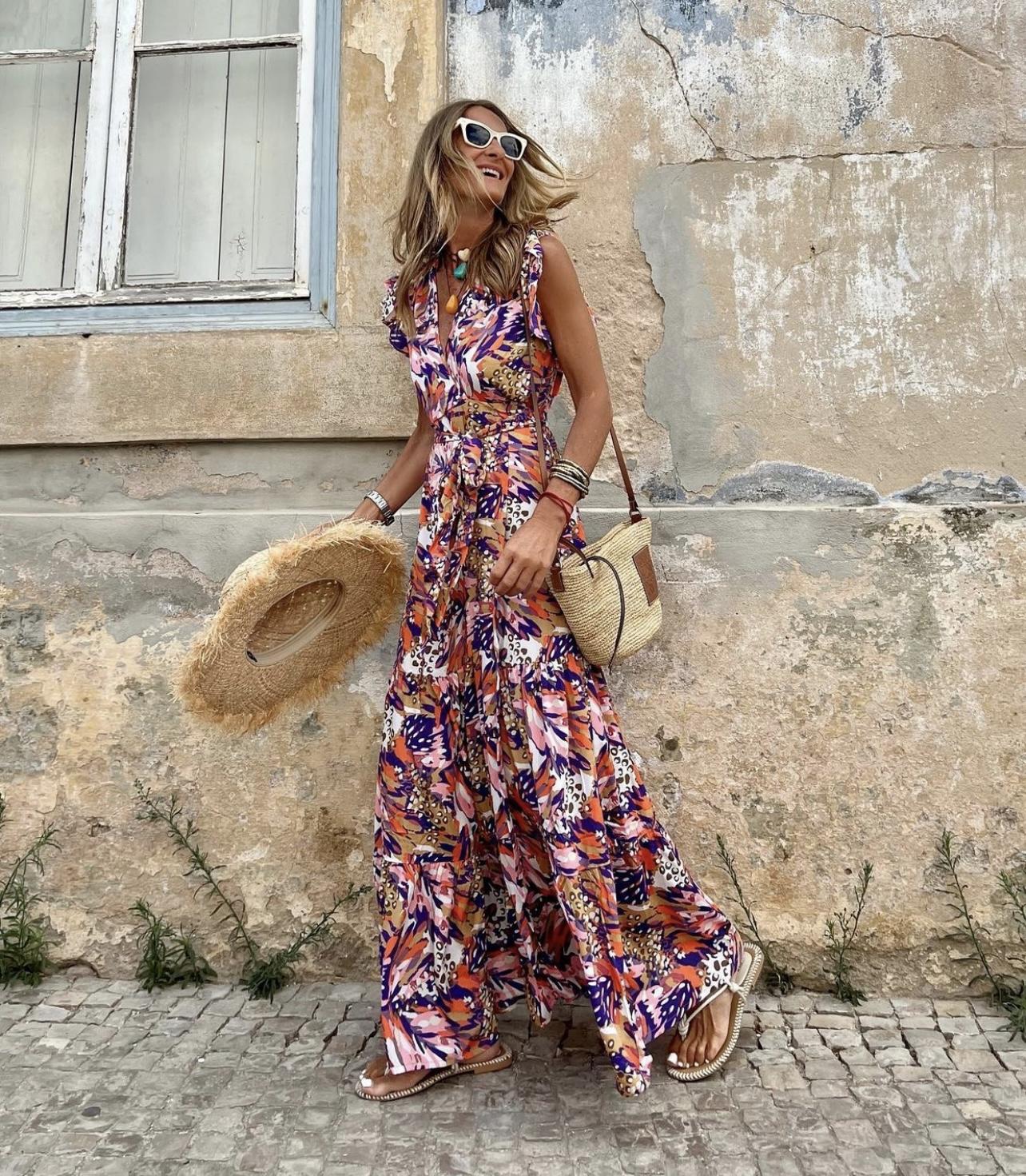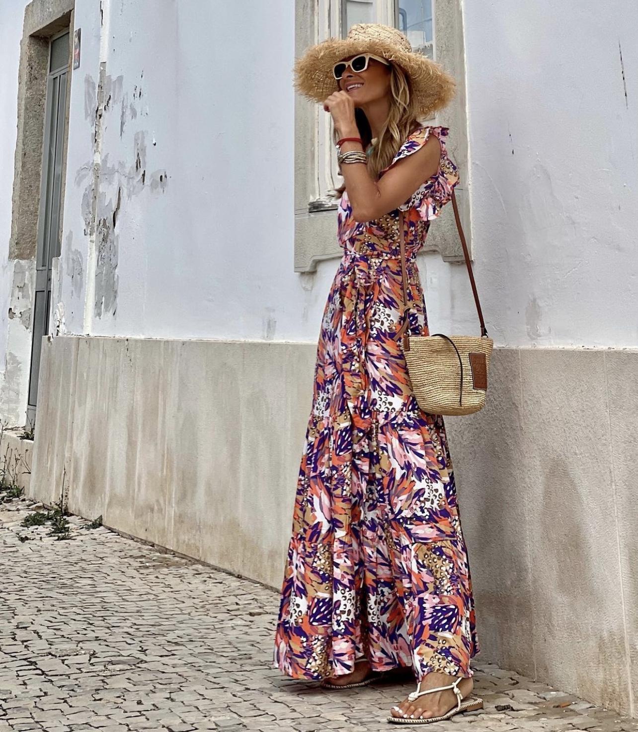 Nuevo vestido cruzado con estampado en tonos lilas.