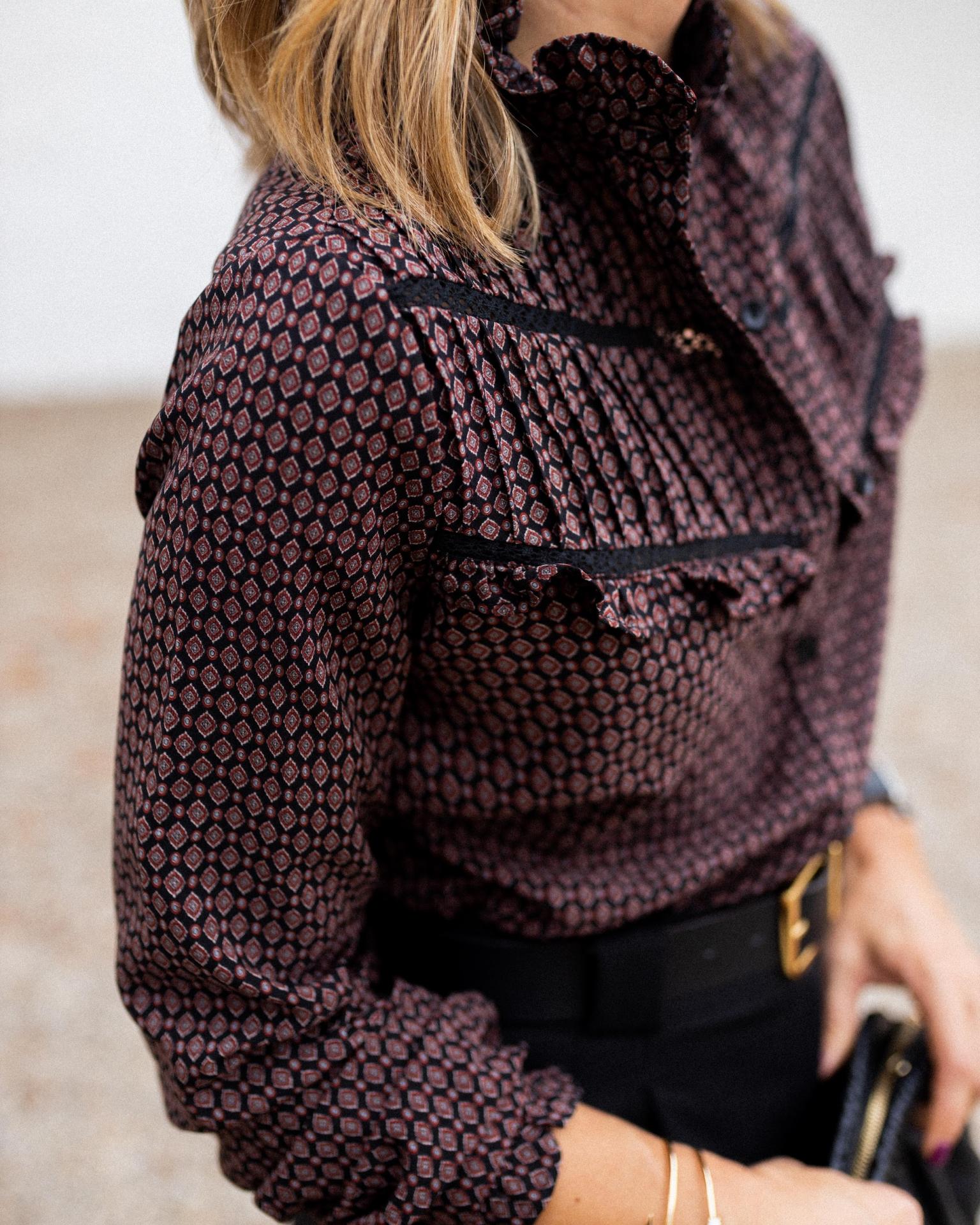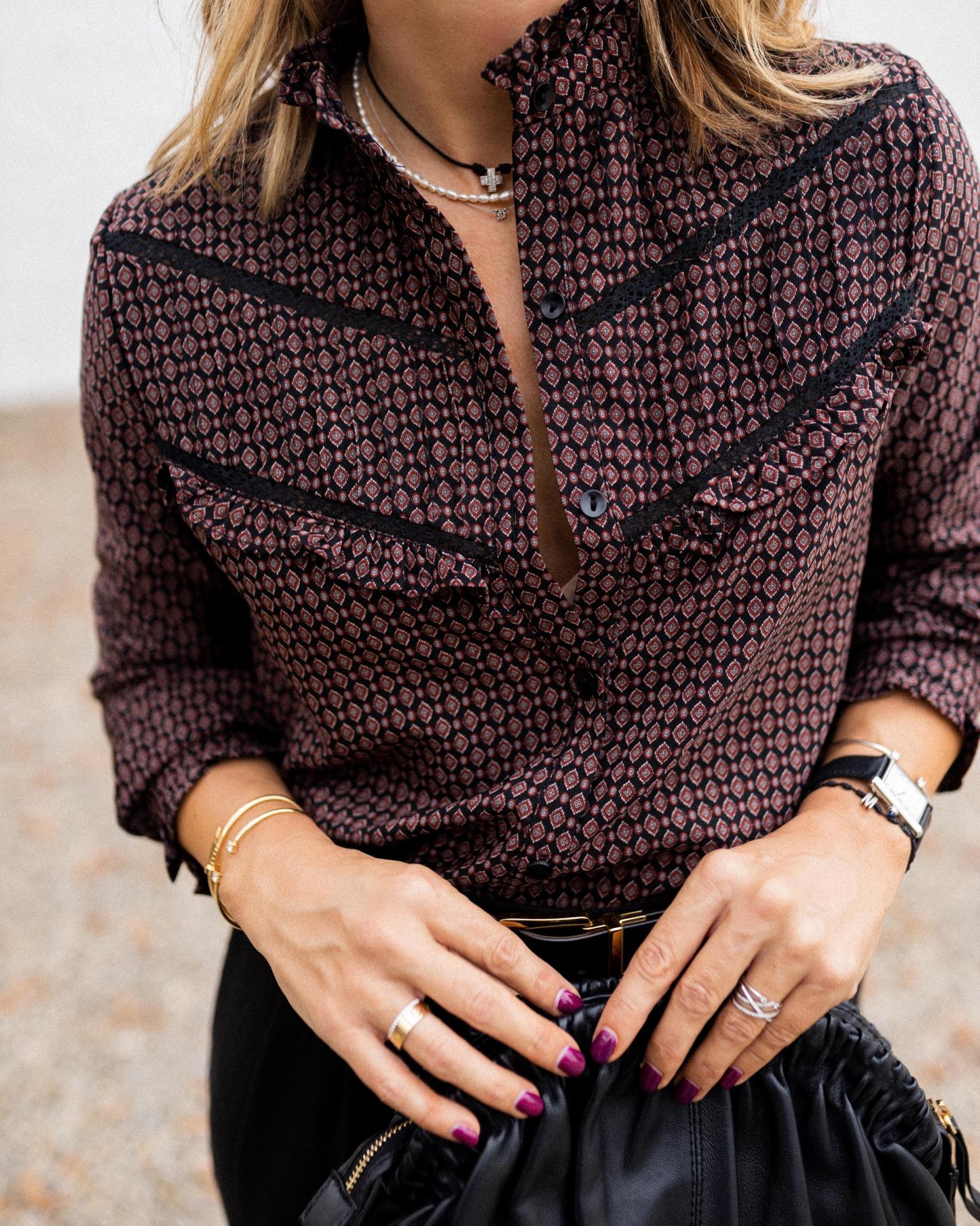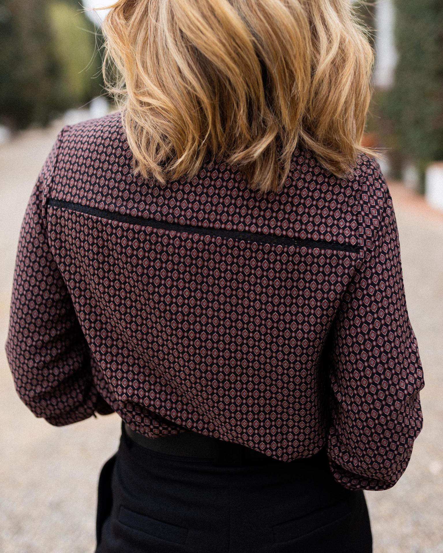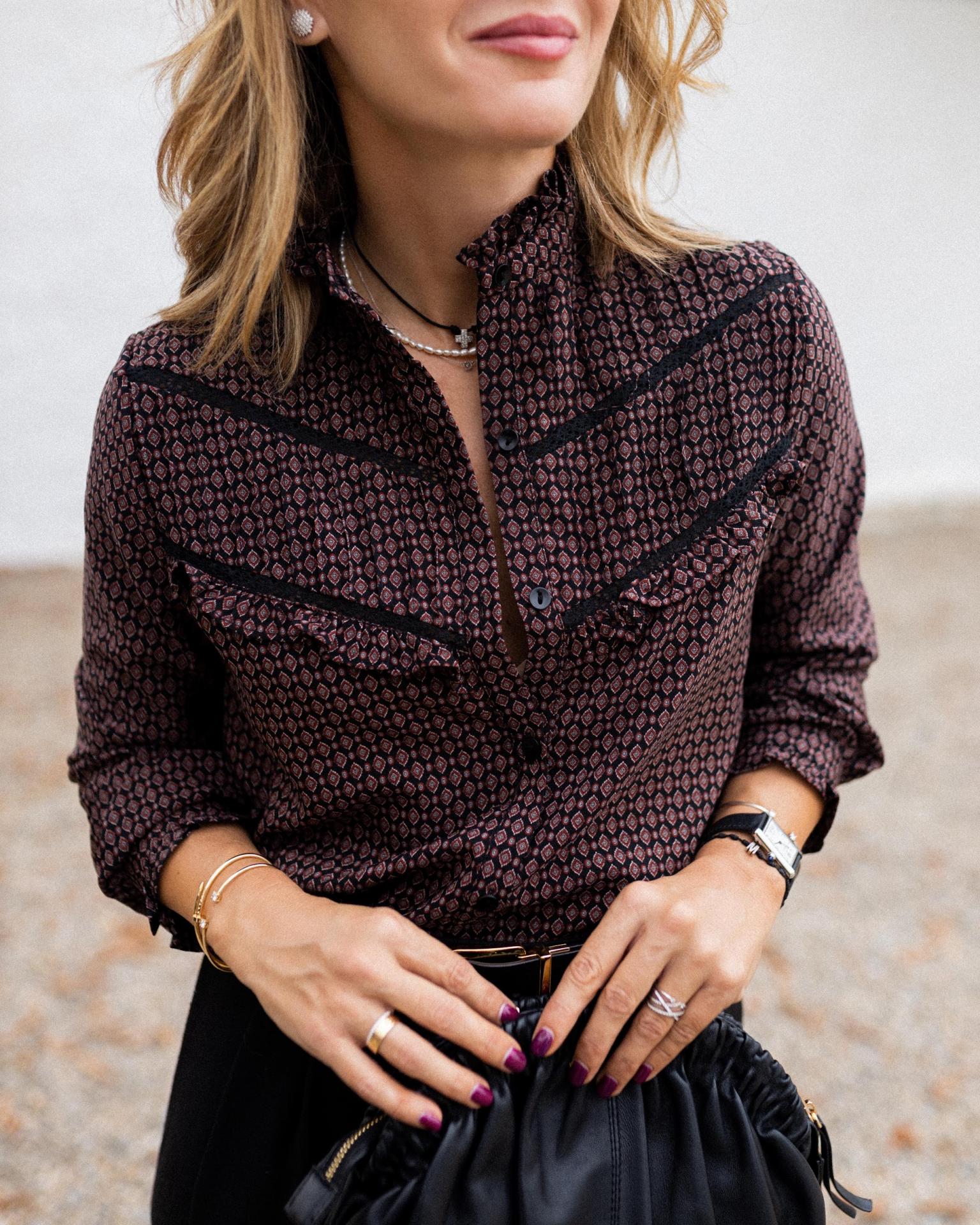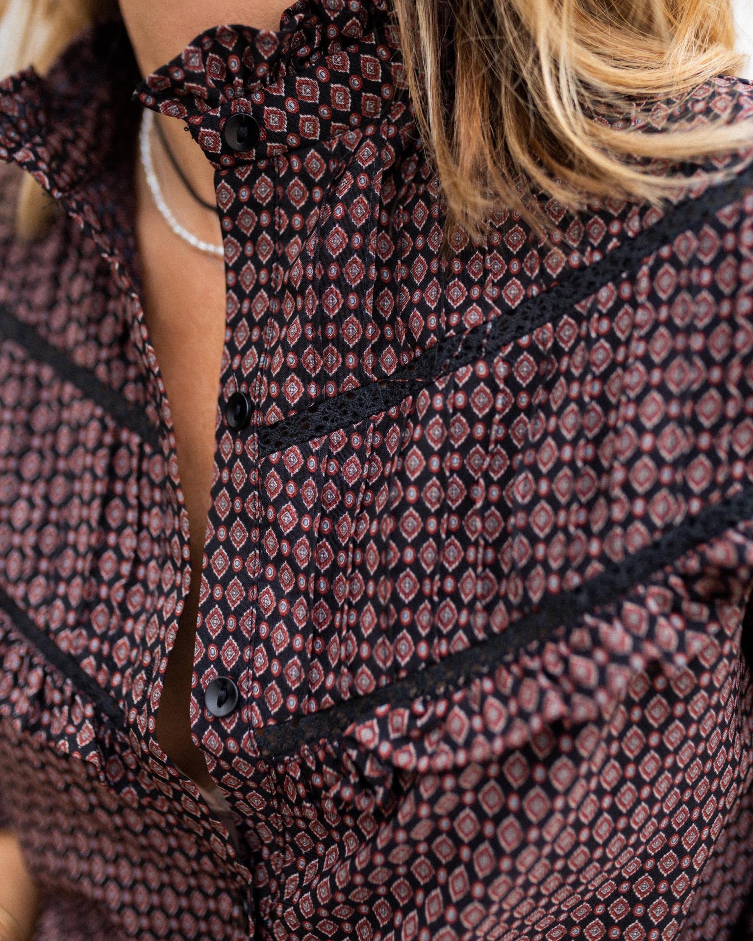 Camisa con cuello mao y estampada
