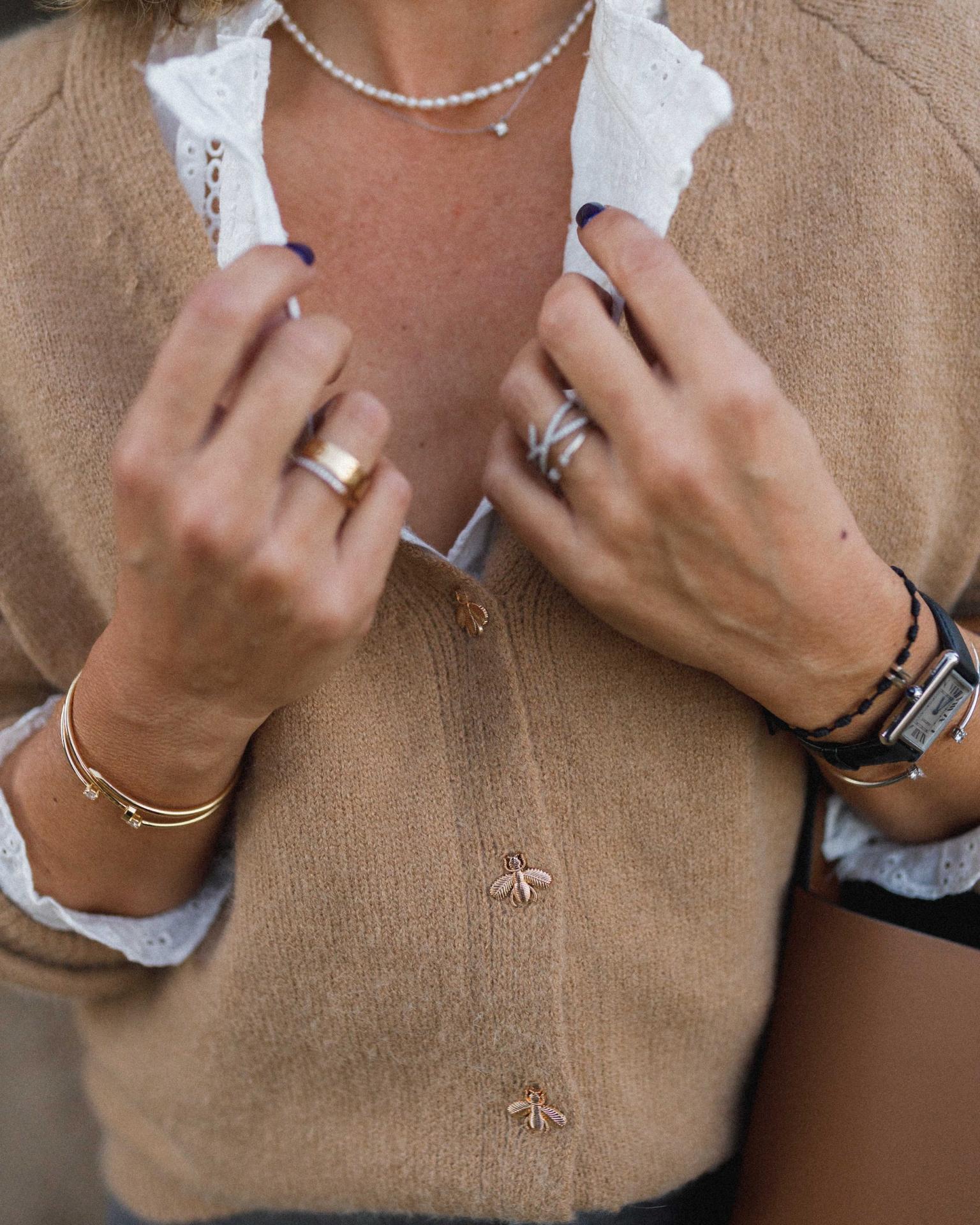 Chaqueta con cuello de pico y botones de abejas