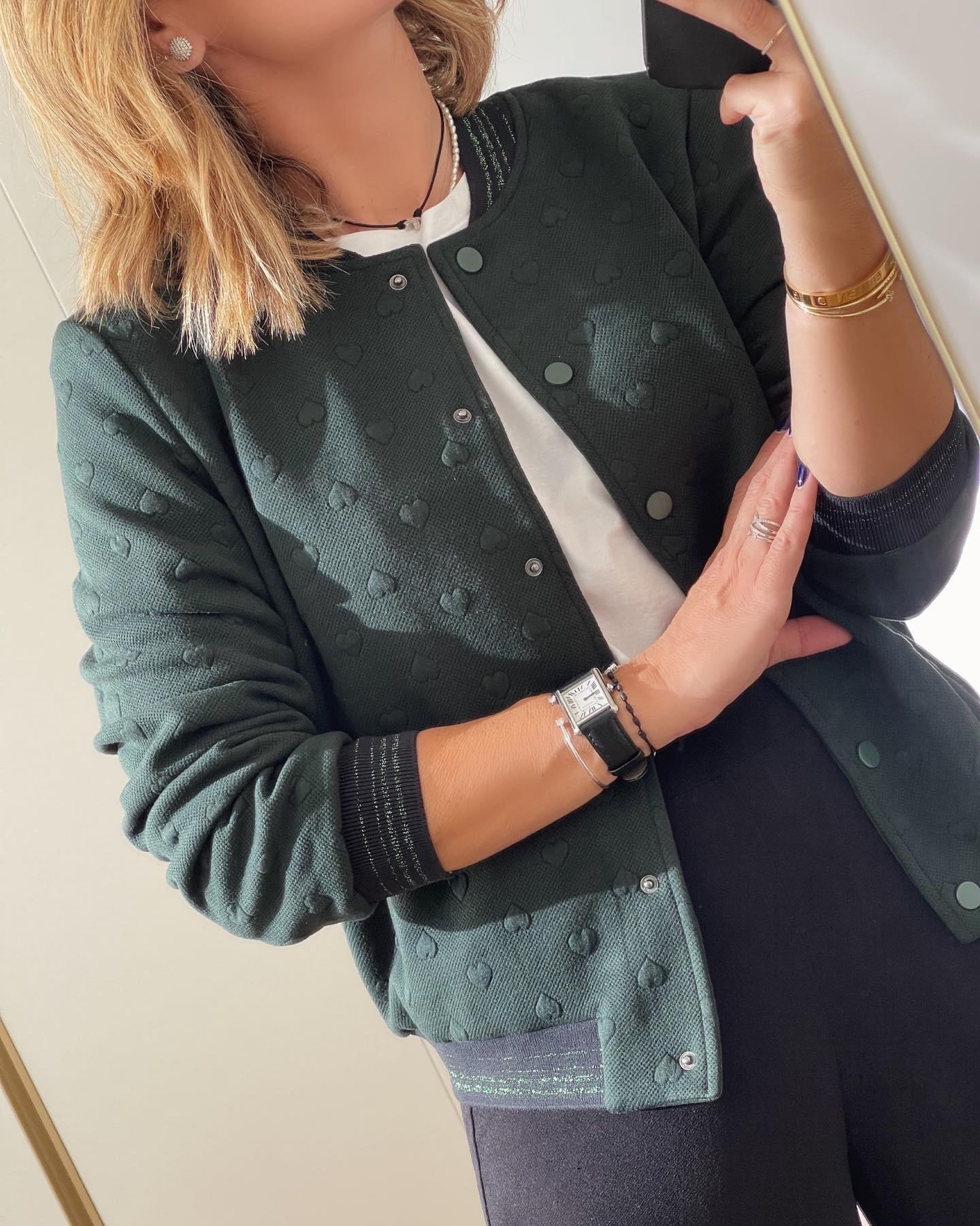 Chaqueta con cuello redondo, estampado de corazones y forro interior