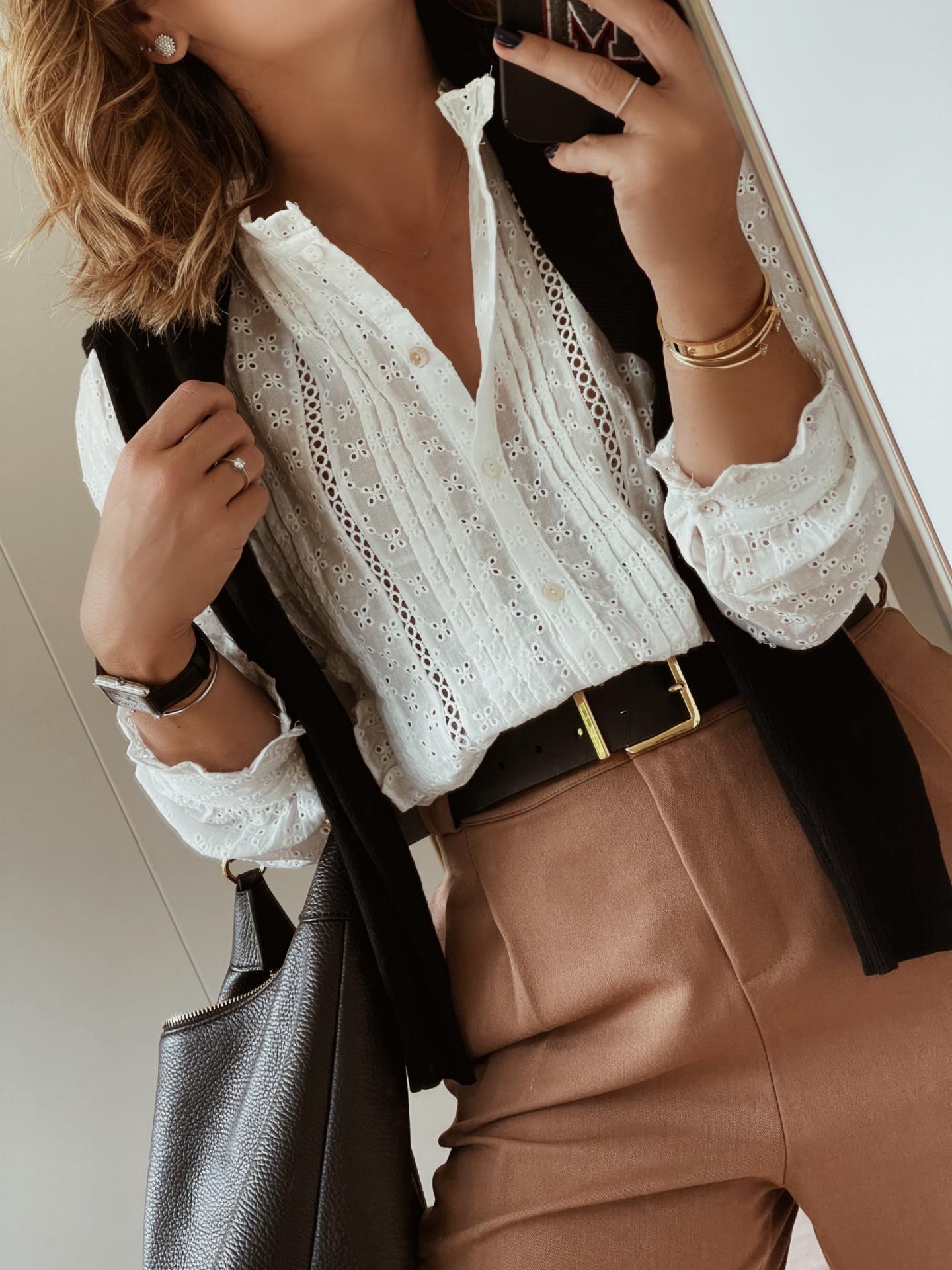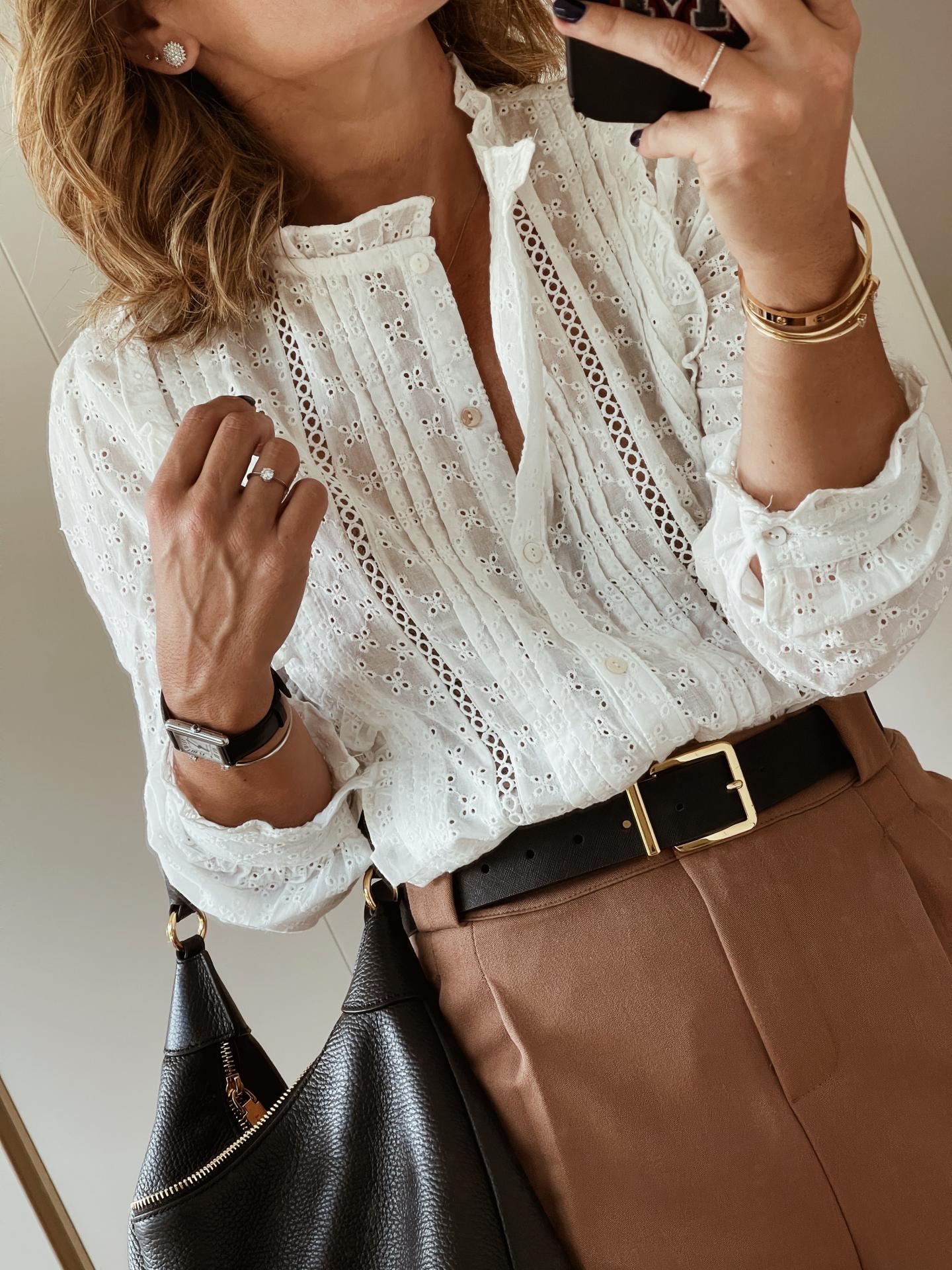 Blusa bordada con detalles de flores.