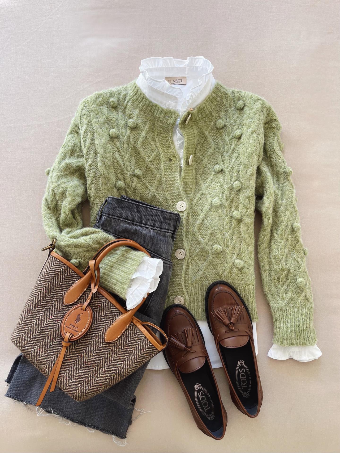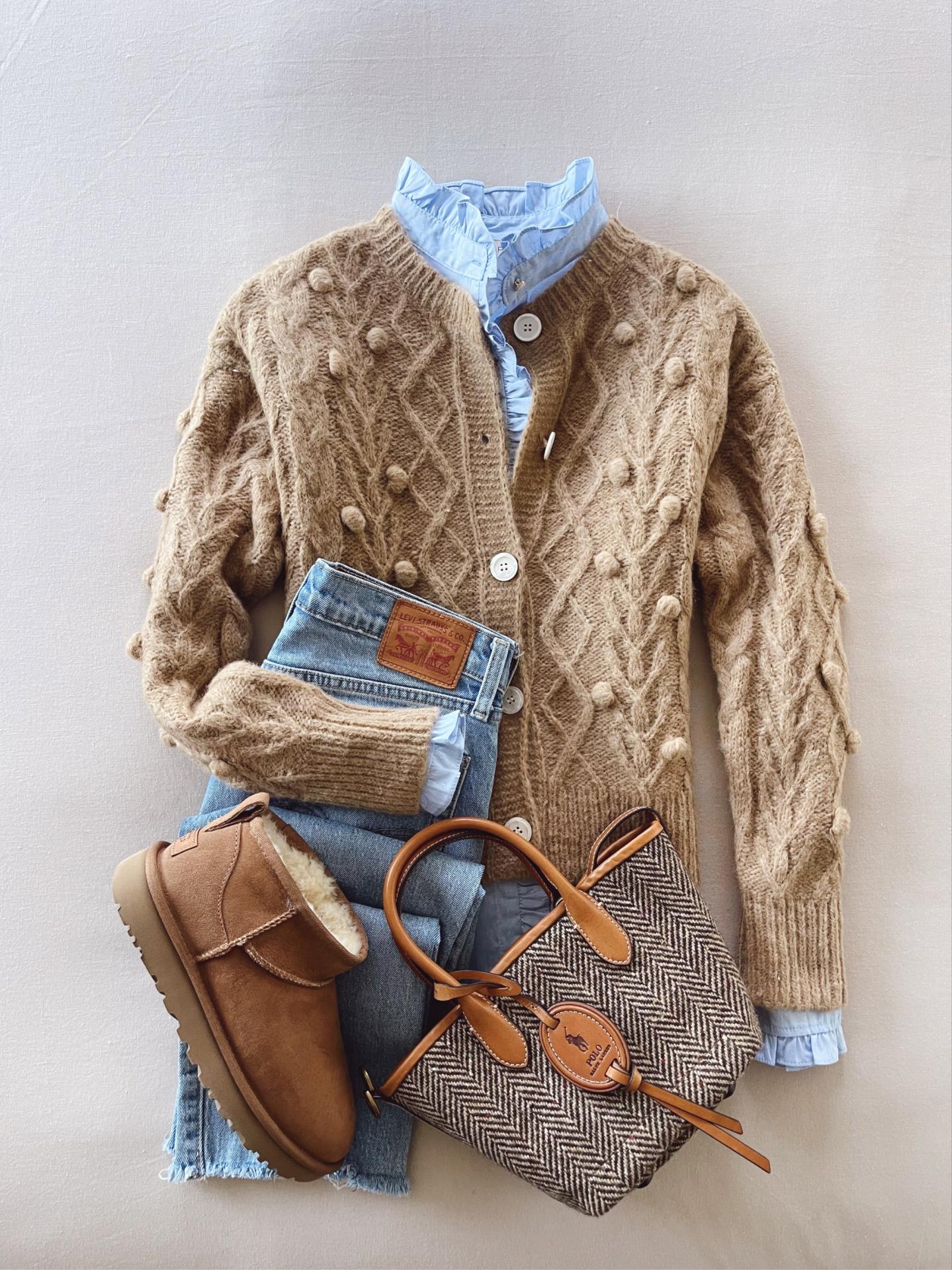 Chaqueta trenzada con cuello redondo y bolitas en la parte delantera