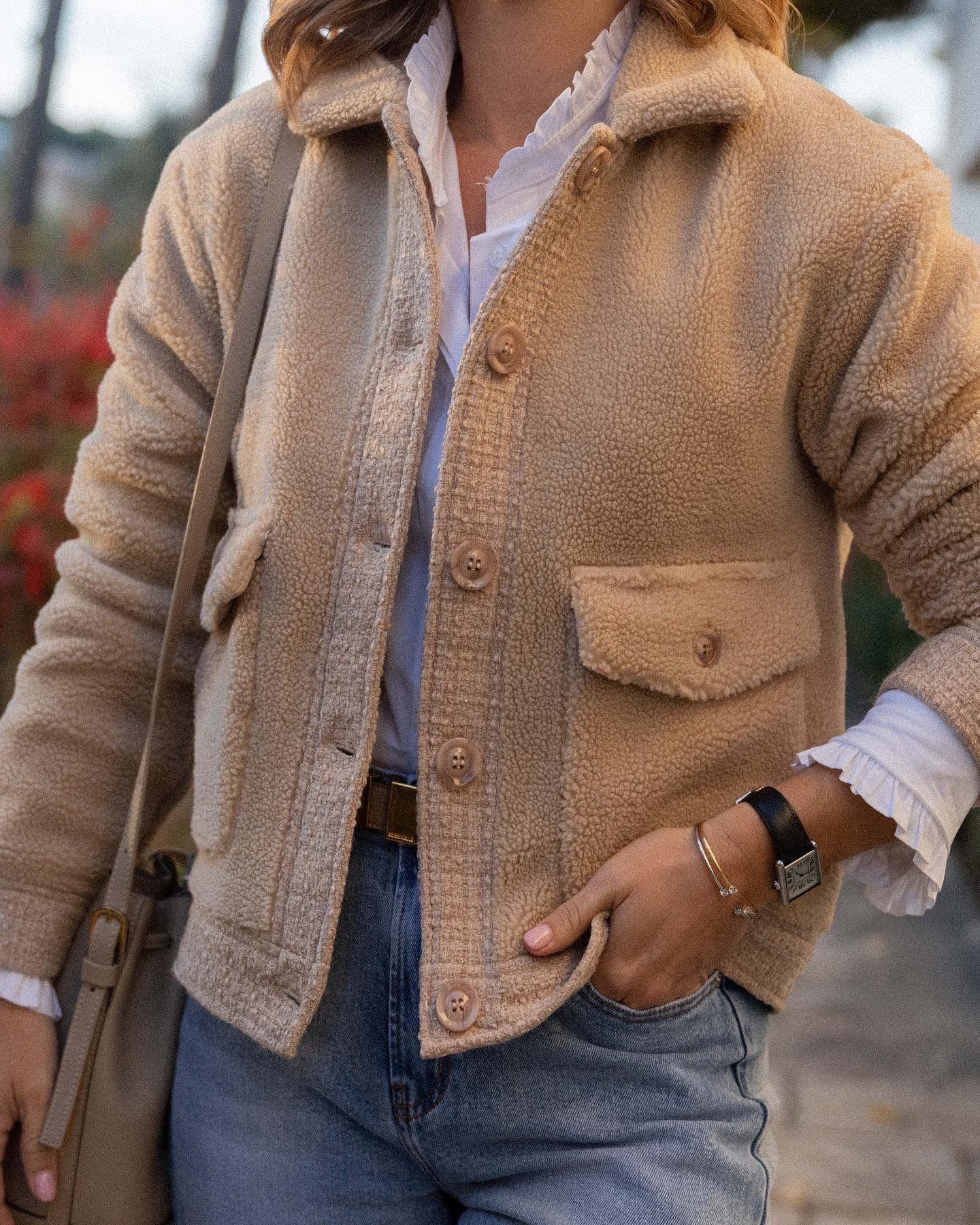 Chaqueta de borreguito con bolsillos