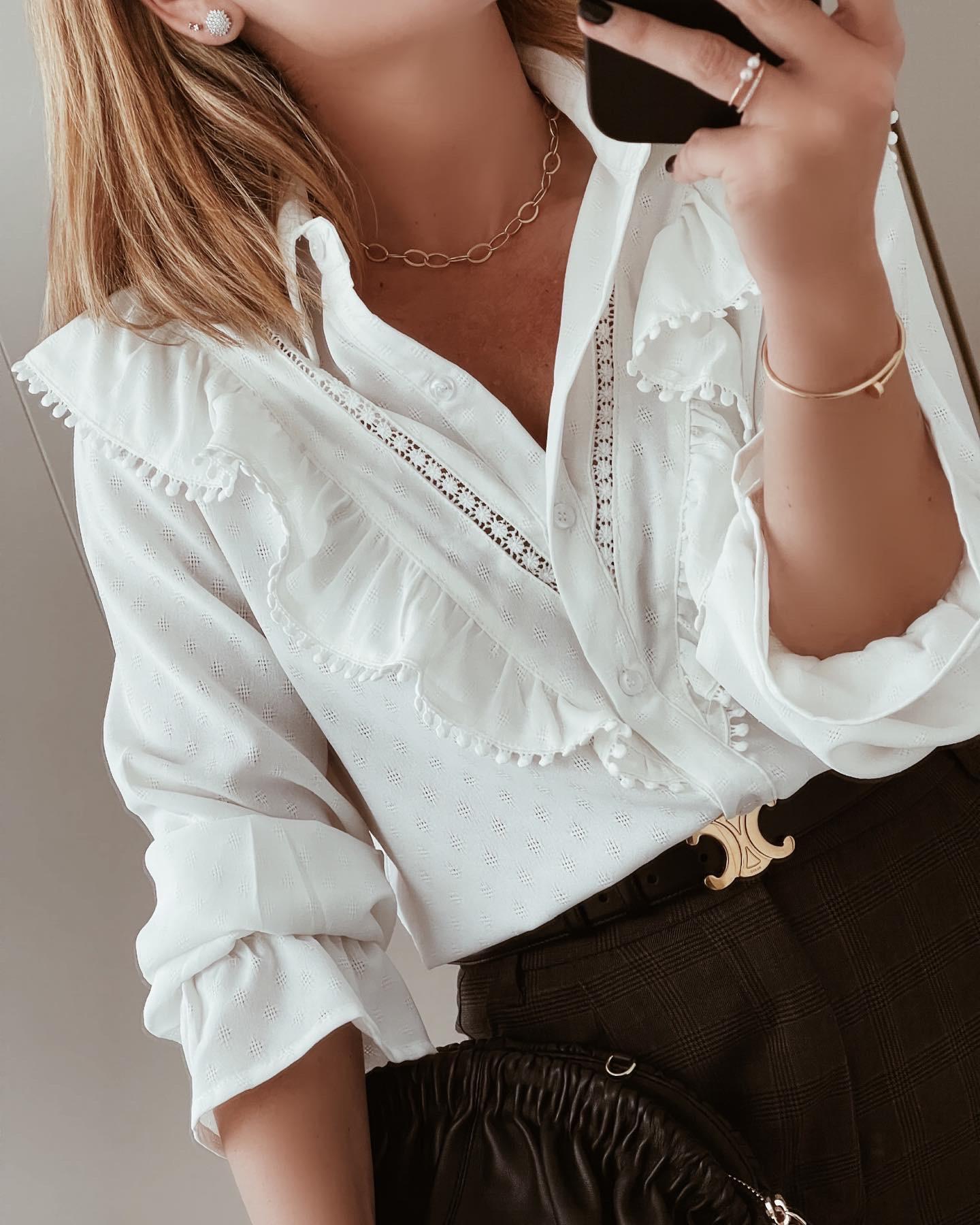 Blusa con volantes en la parte delante y en las mangas