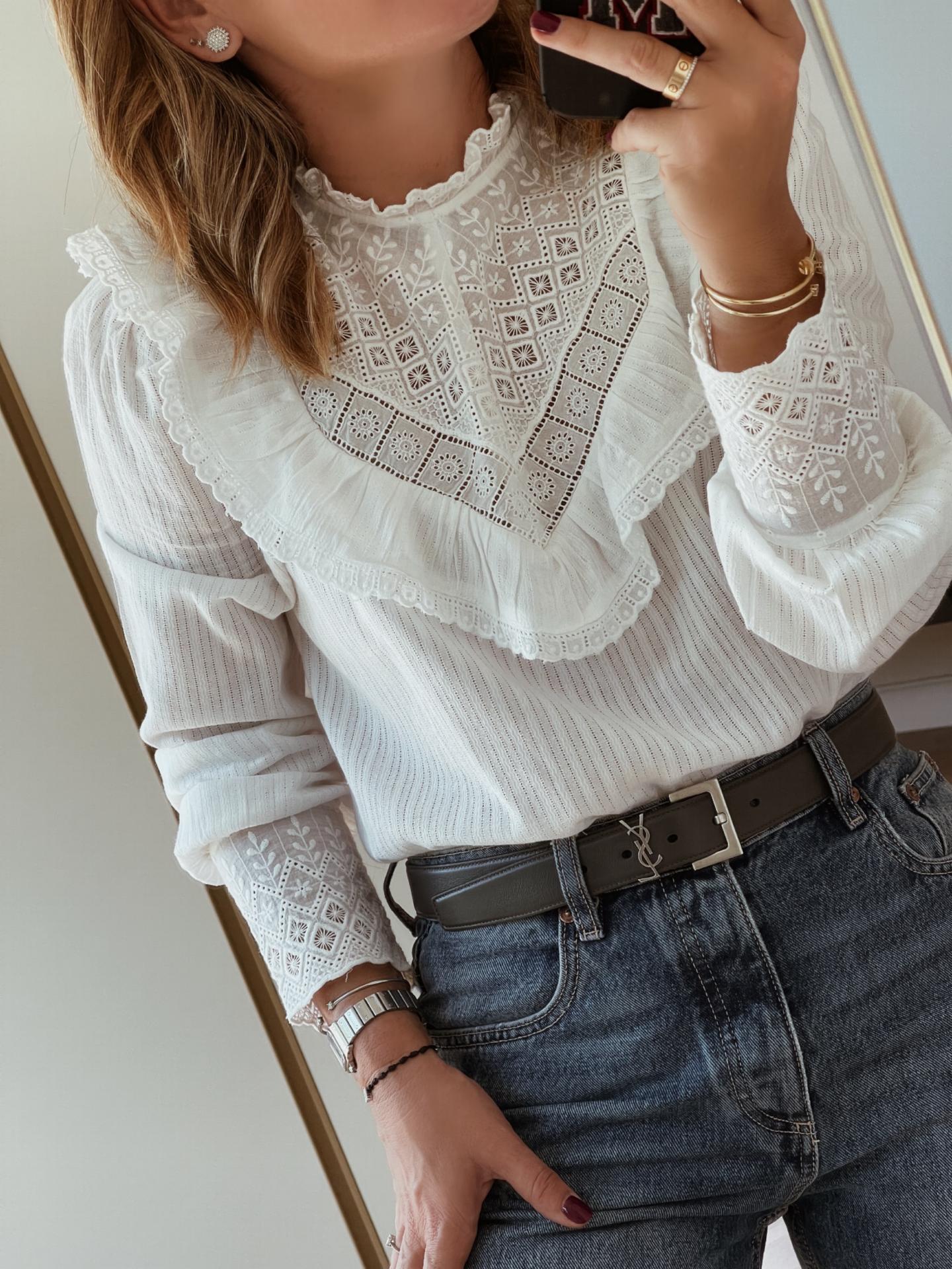 Nueva blusa con bordados en escote y mangas.