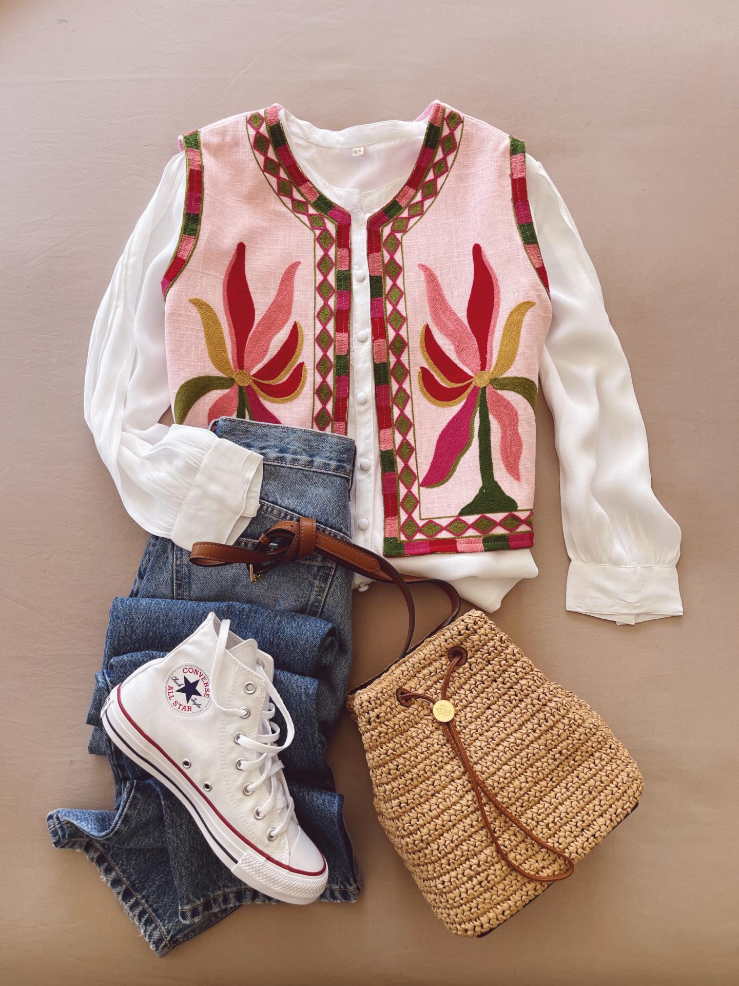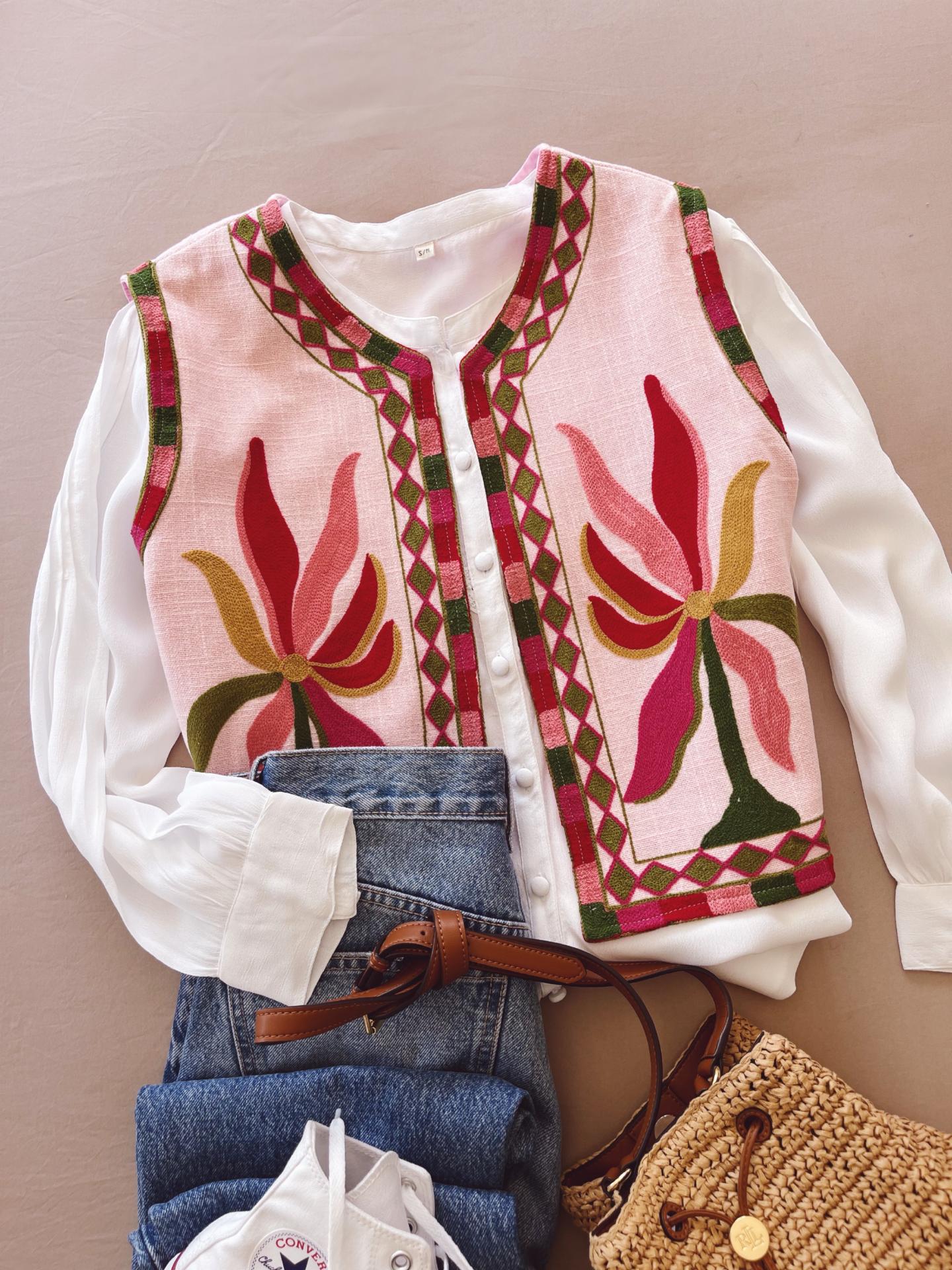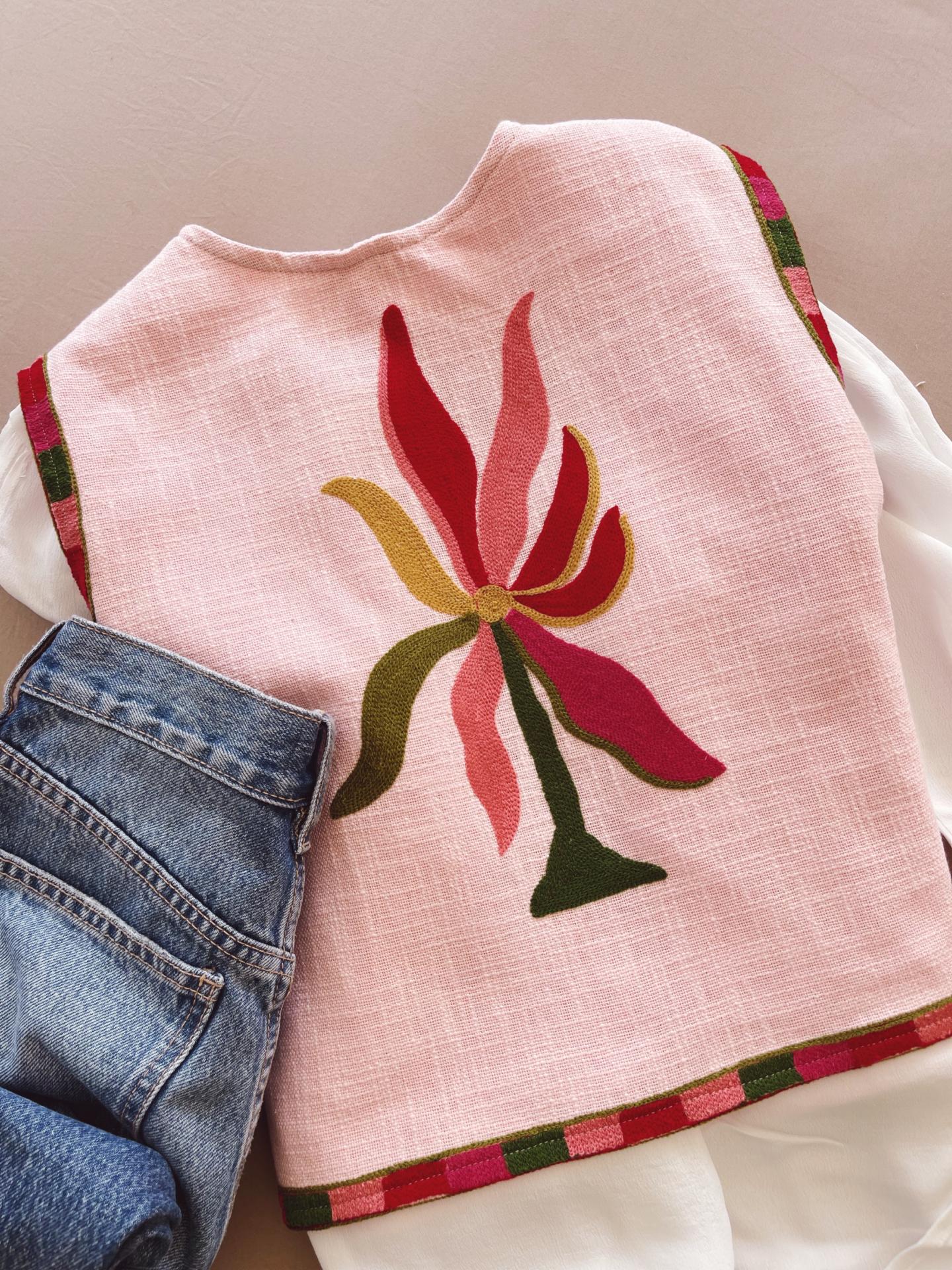 Chaleco colorido con detalles florales