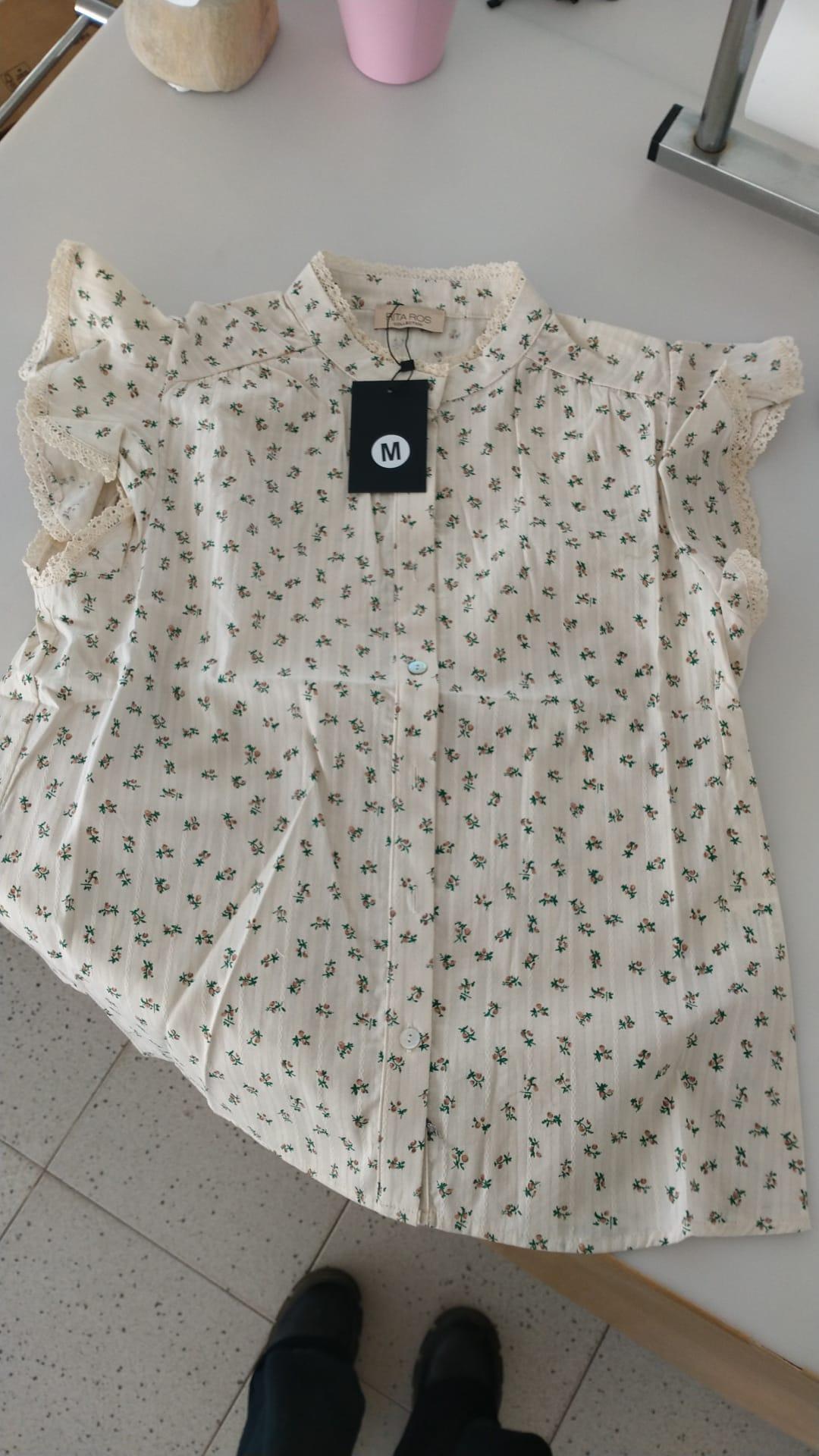 Camisa estampada sin mangas con detalles de encaje