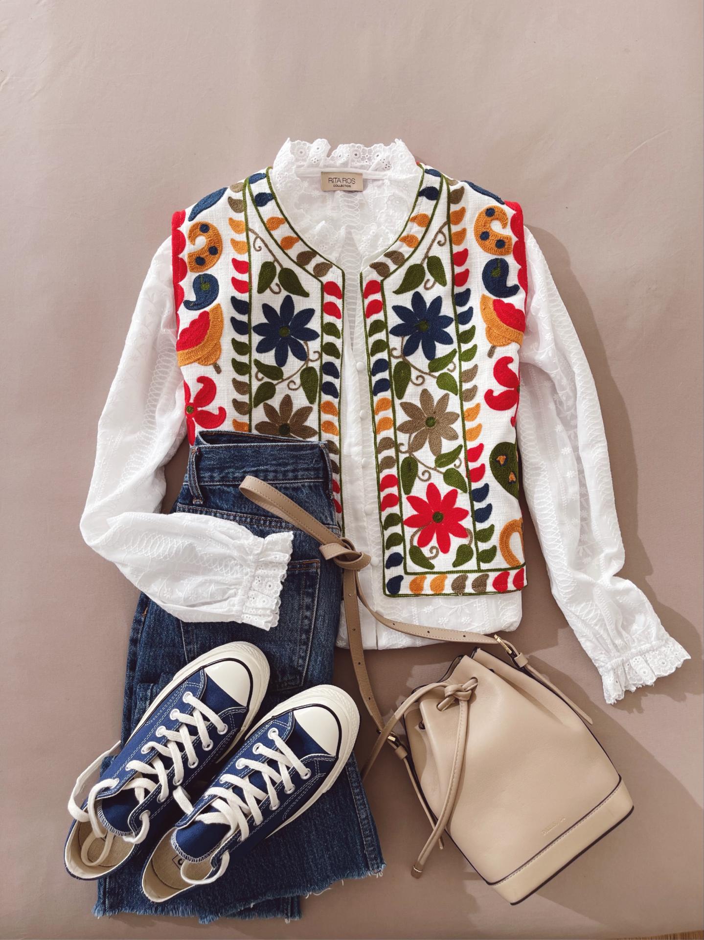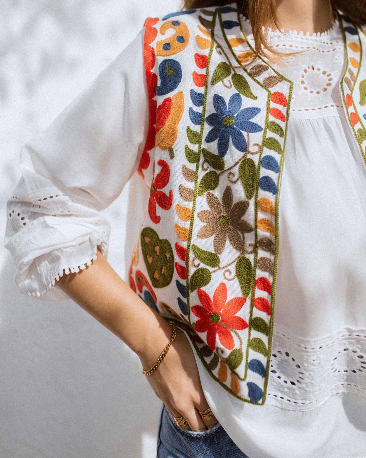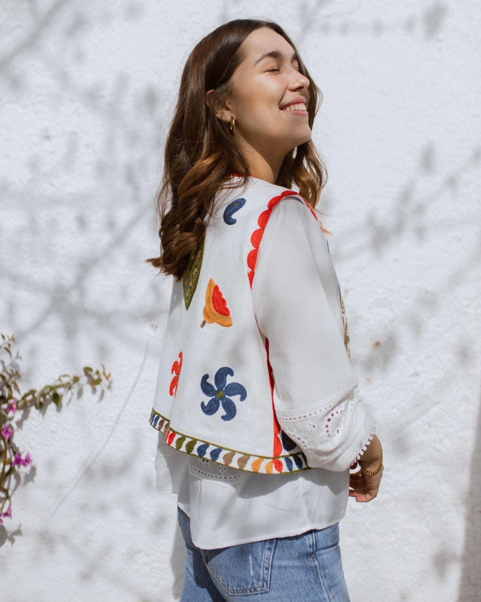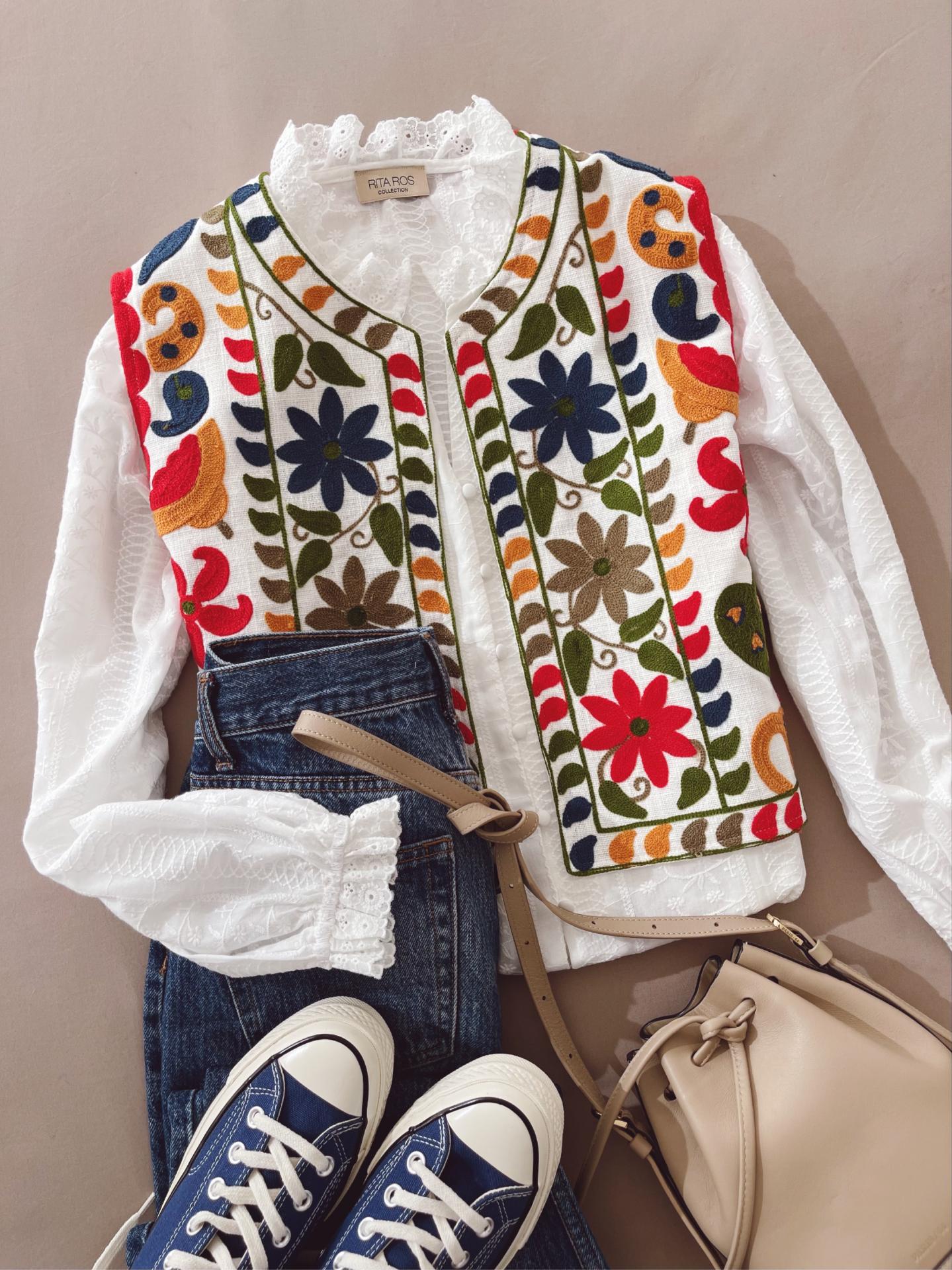 Chaleco colorido con detalles florales