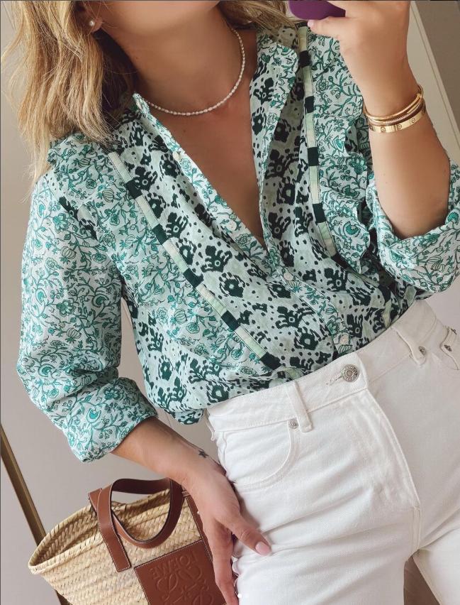 Blusa con estampado floral y volantes.