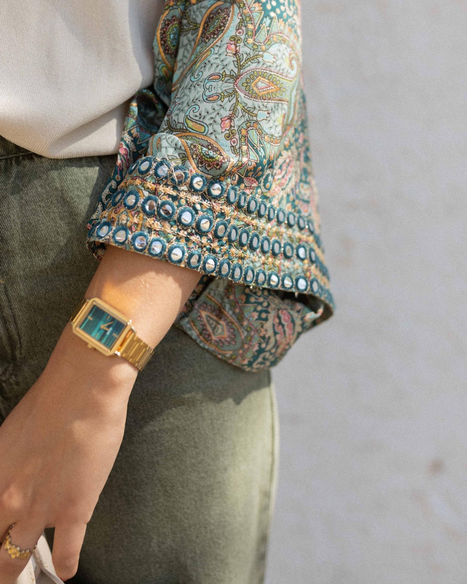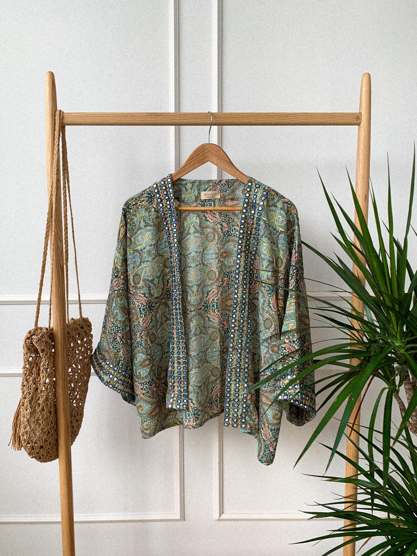 Kimono con detalles brillantes.