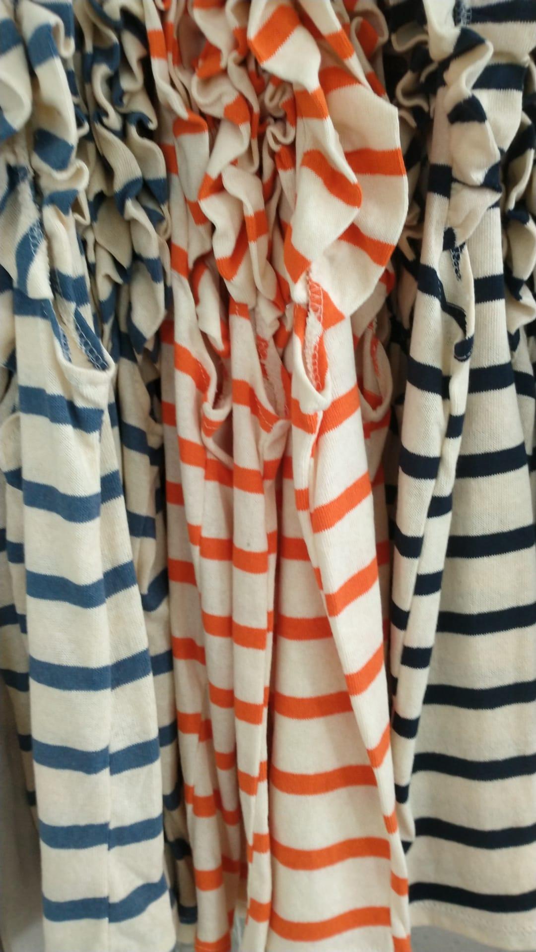 Camiseta sin mangas de rayas con volantes en los hombros
