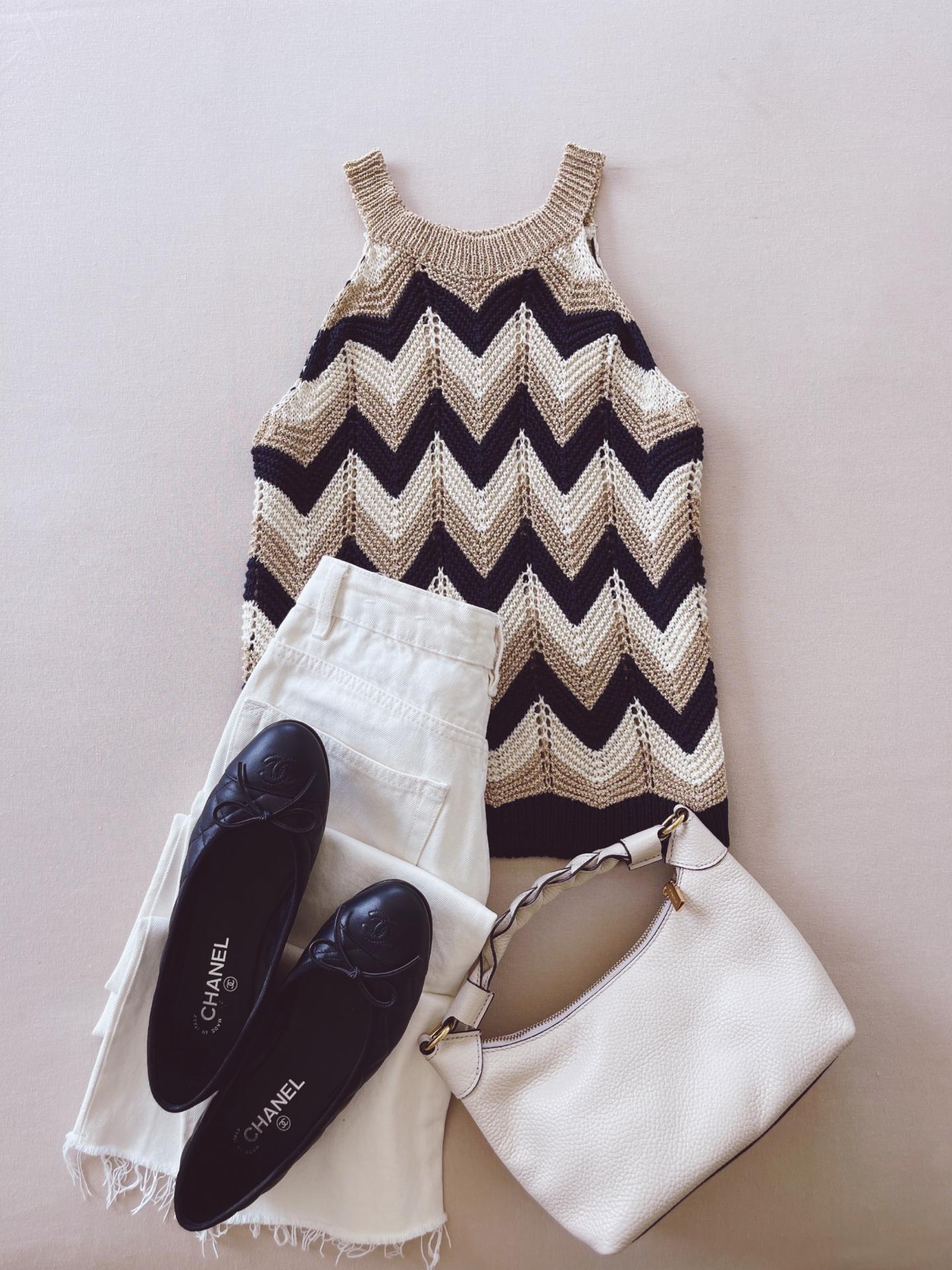 Top de tirantes de punto con cuello halter. Tejido lurex con brillo dorado