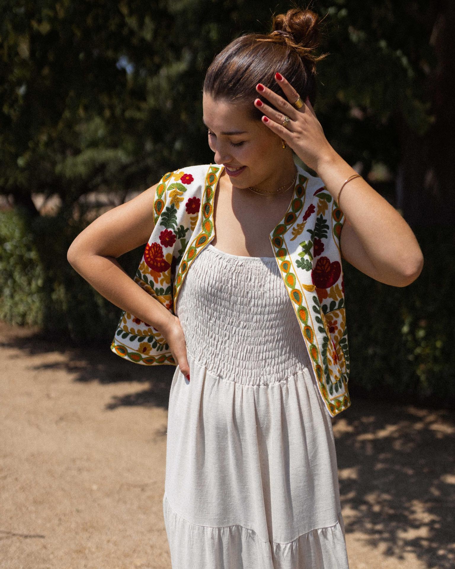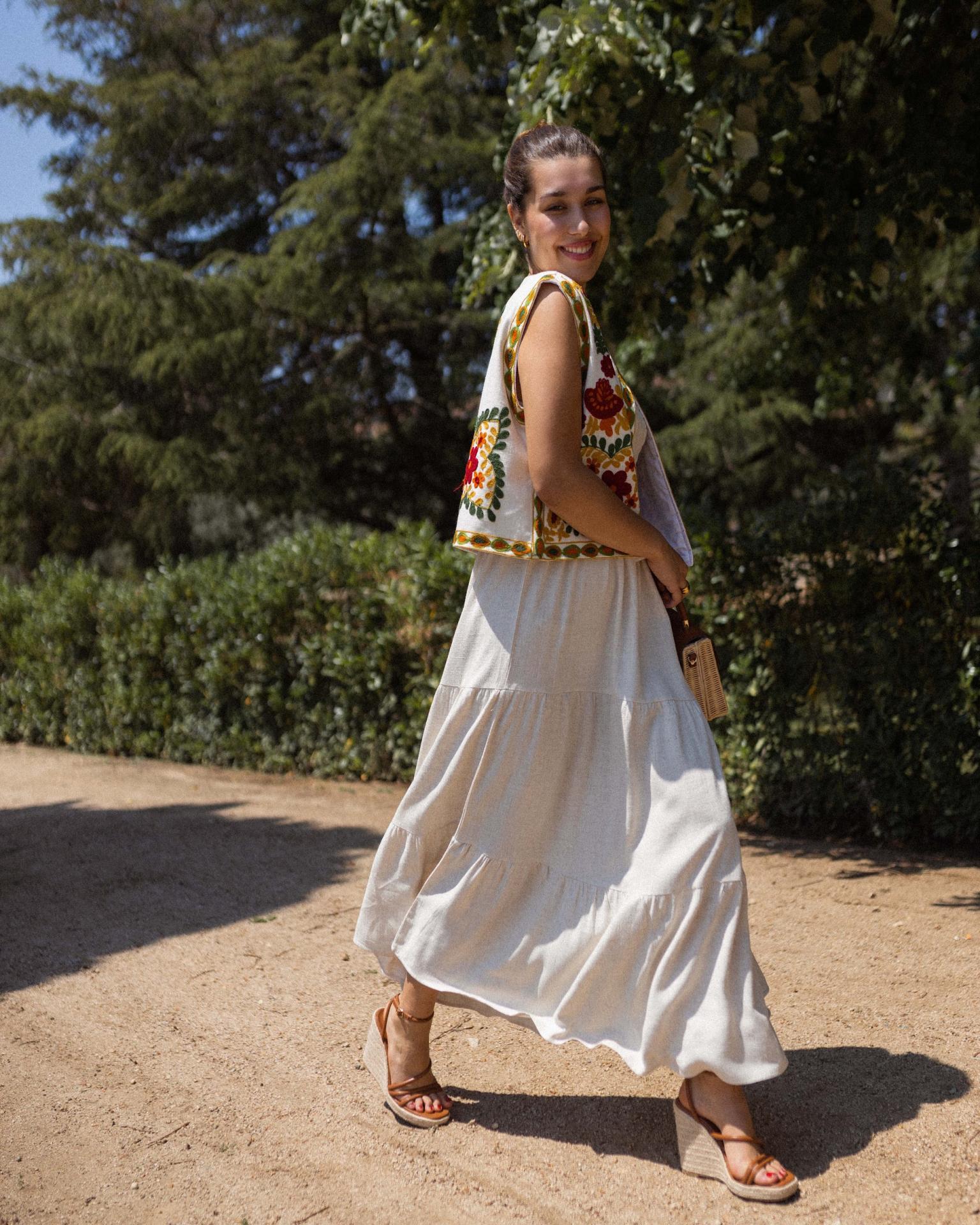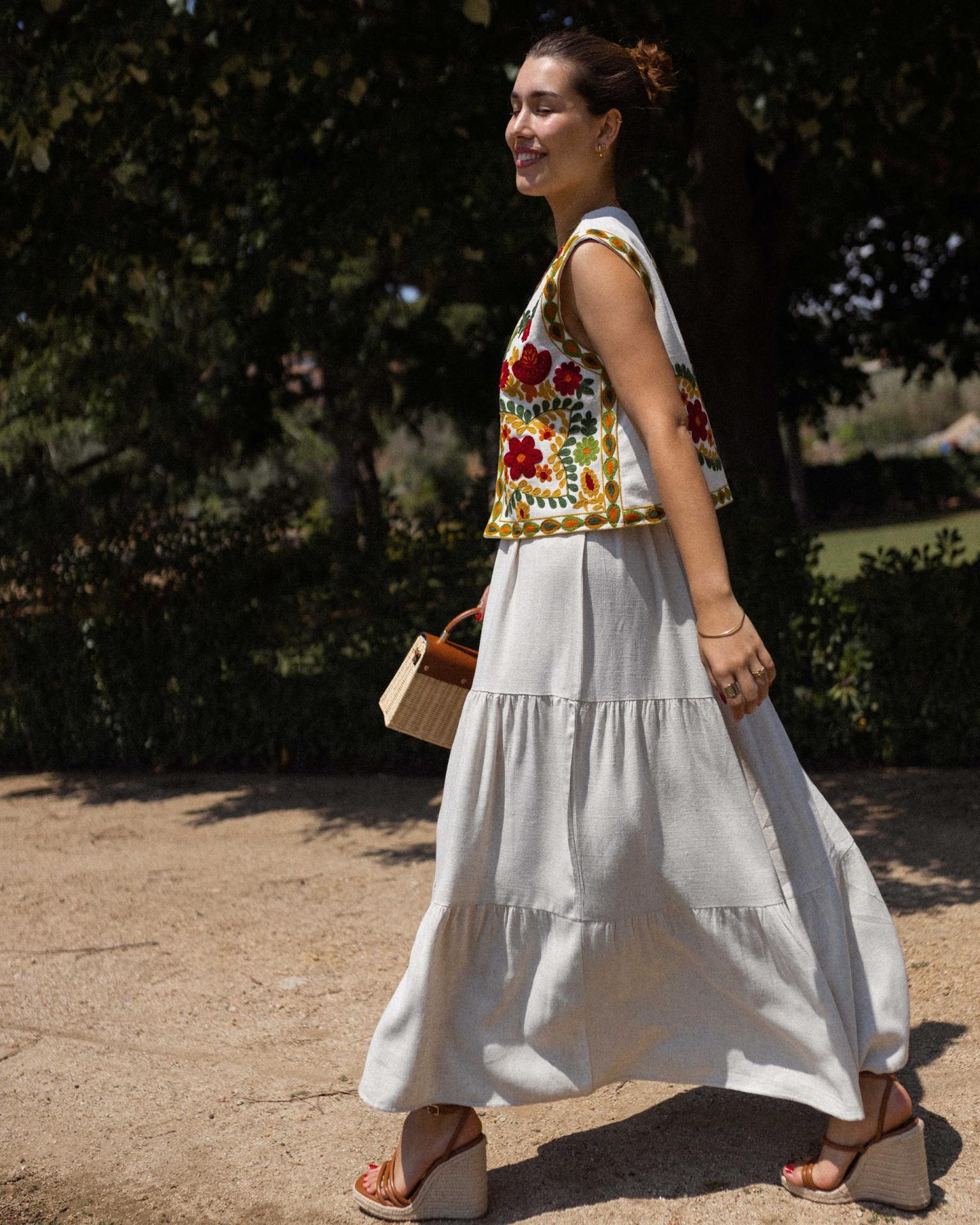 Vestido largo liso de tirantes finos y ajustables con nido de abeja en el pecho