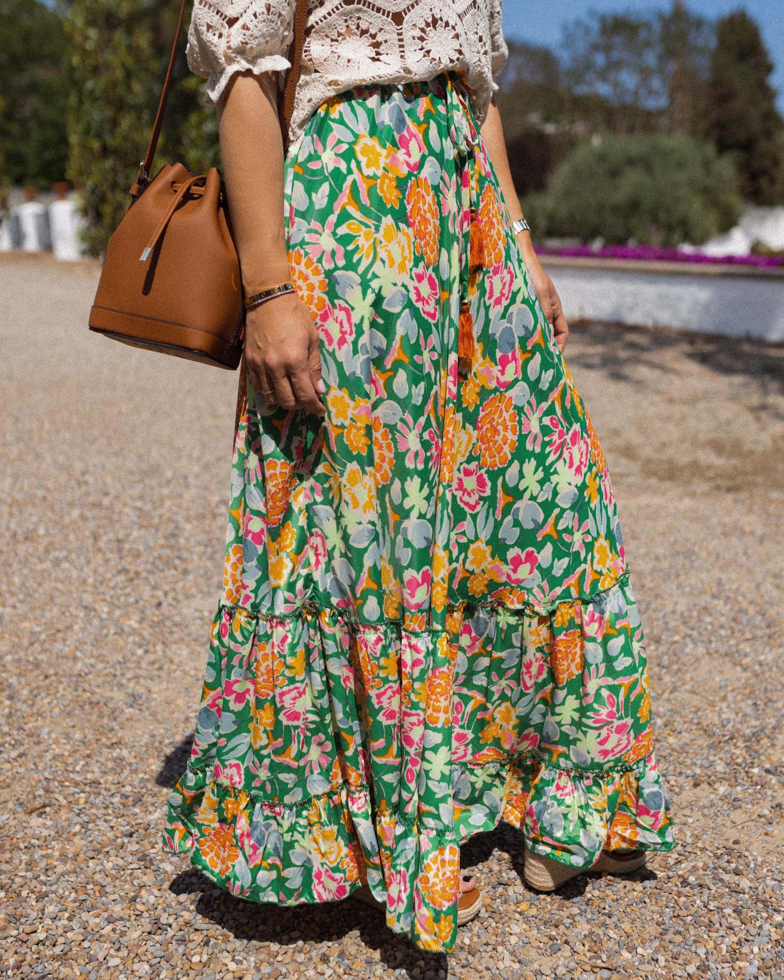 Falda larga de estampado floral con goma en la parte trasera de la cintura