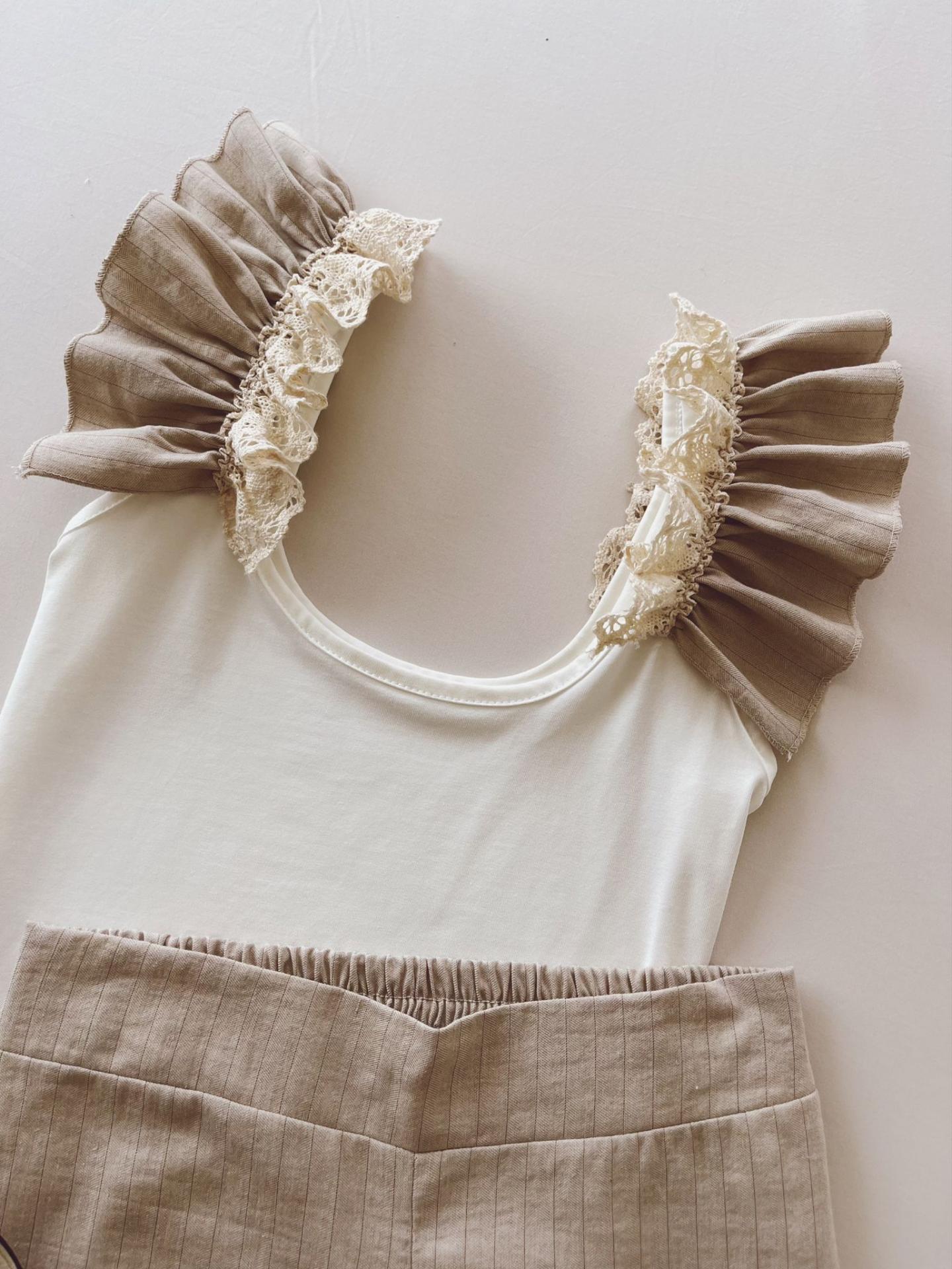 Top sin mangas con volantes diplomatic en los hombros y detalles de encaje