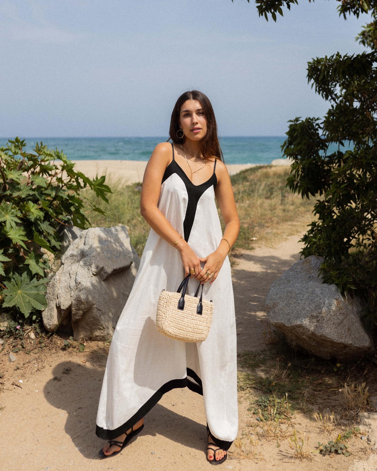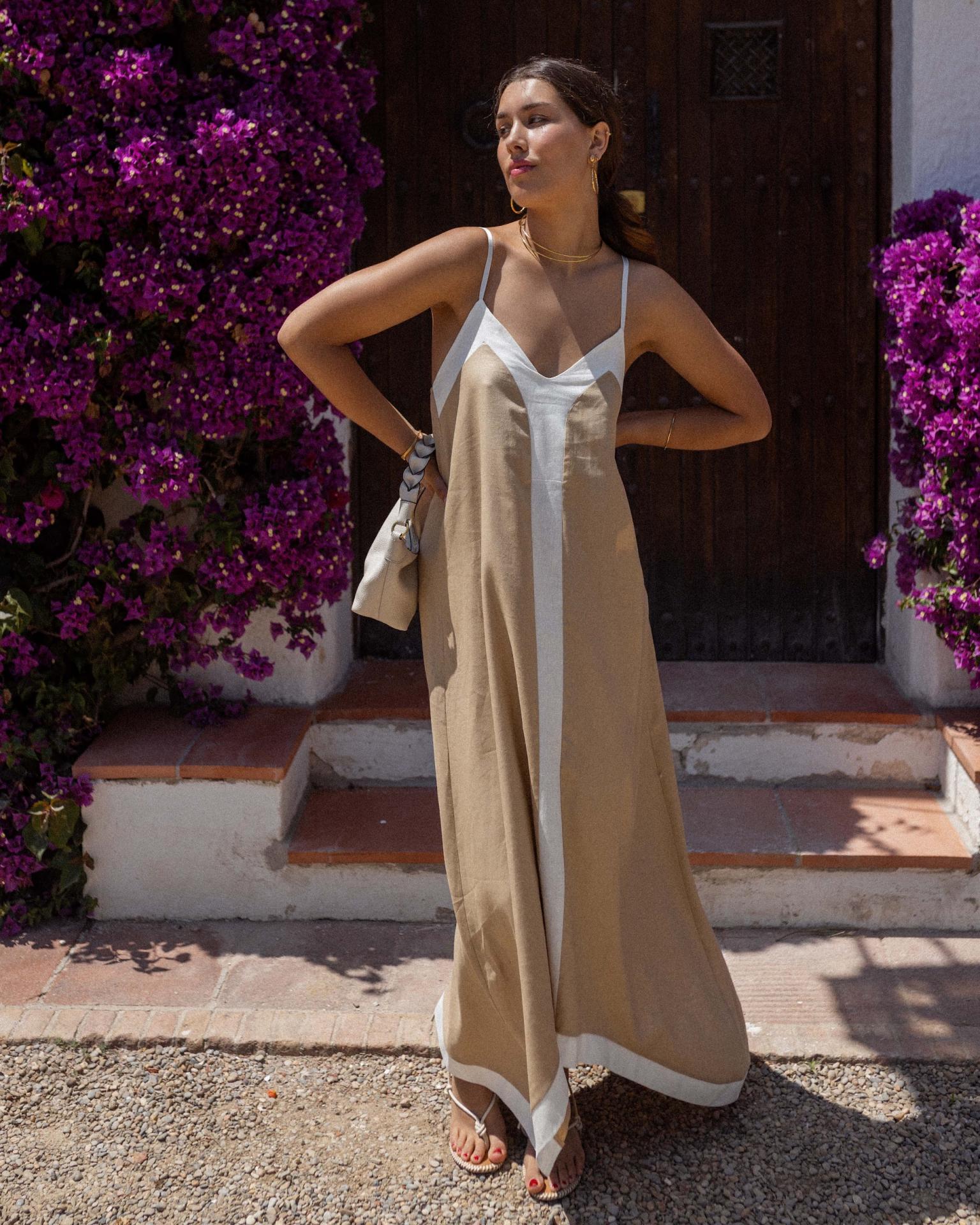 Vestido largo liso de lino irregular en el bajo y tirantes ajustables