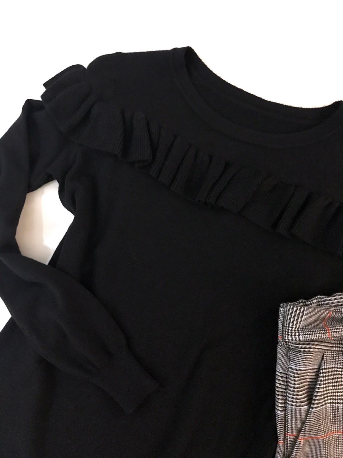 Una monada de jersey de punto con detalle de volante en el pecho que le da un toque diferente y queda monísimo.