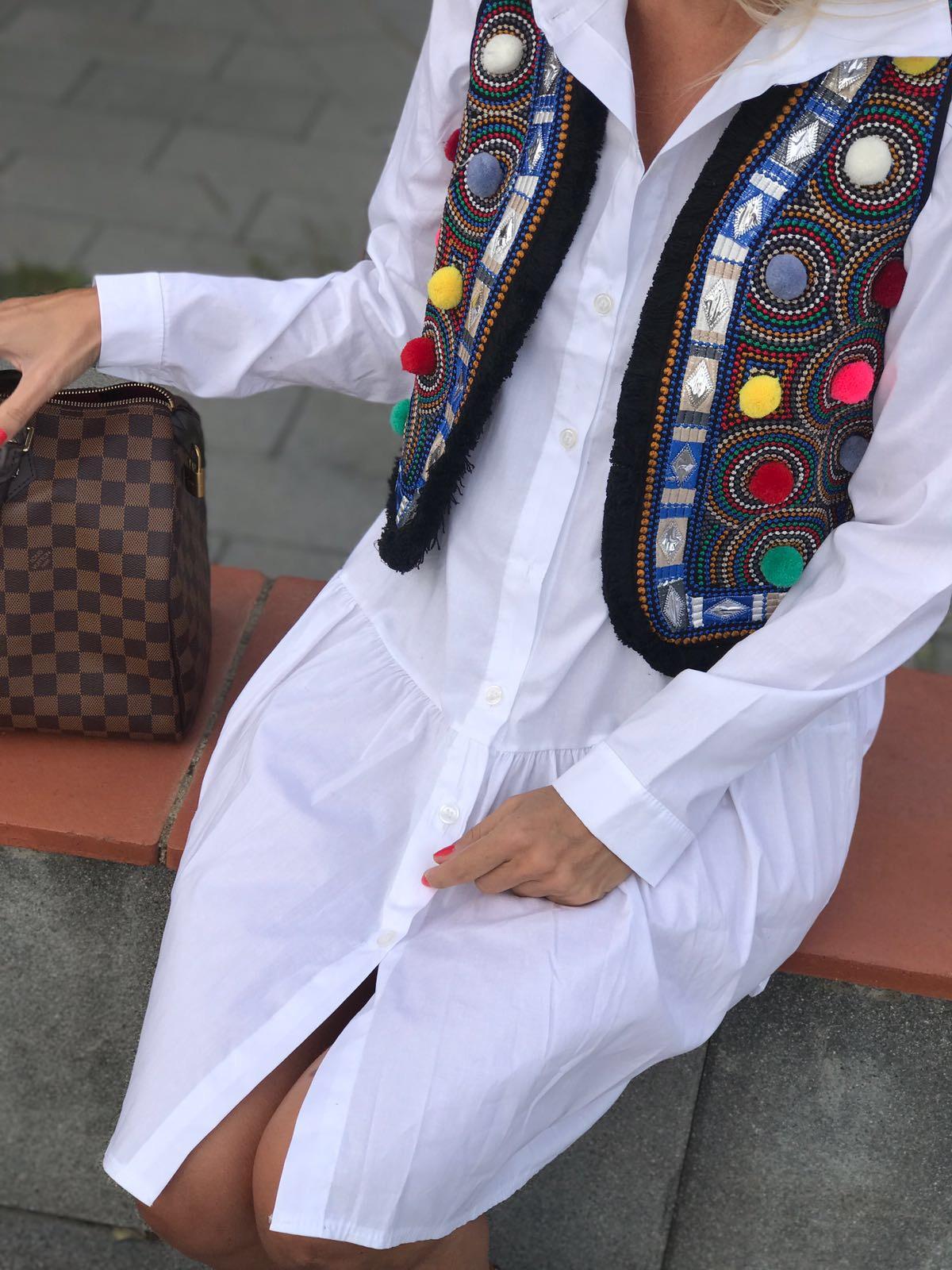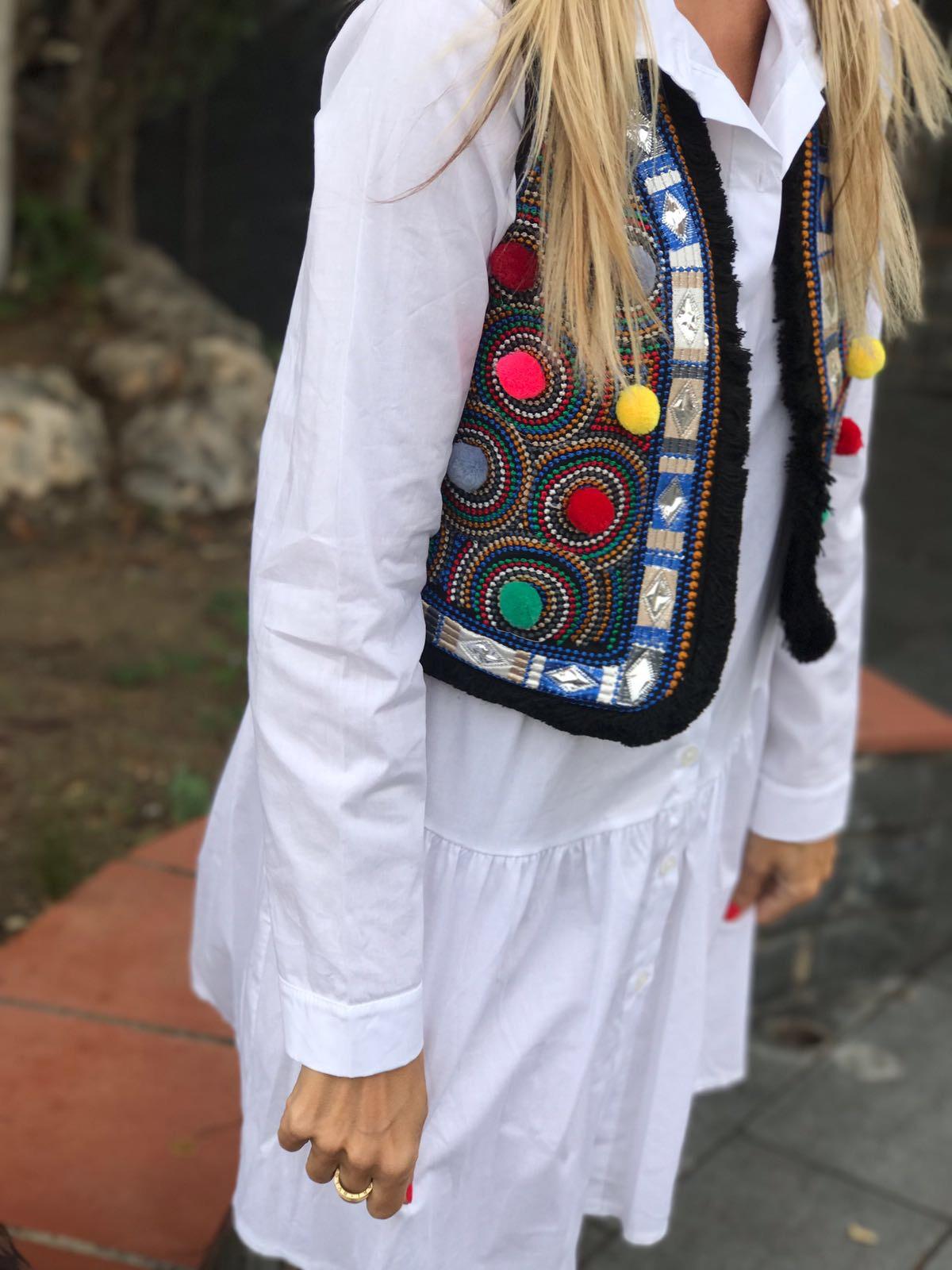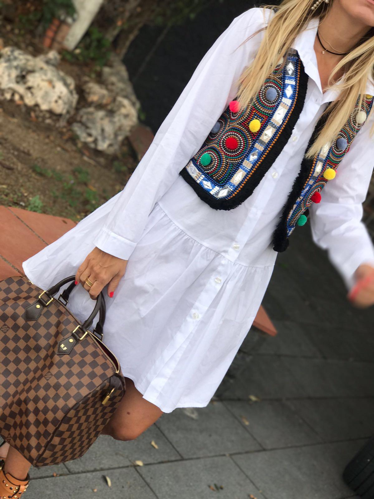 Nuevo vestido camisero corto con botones. Lo hemos combinado con nuestro chaleco bordado y la combinación es genial!
