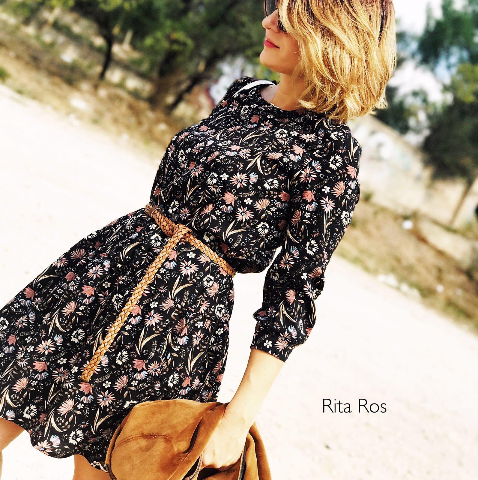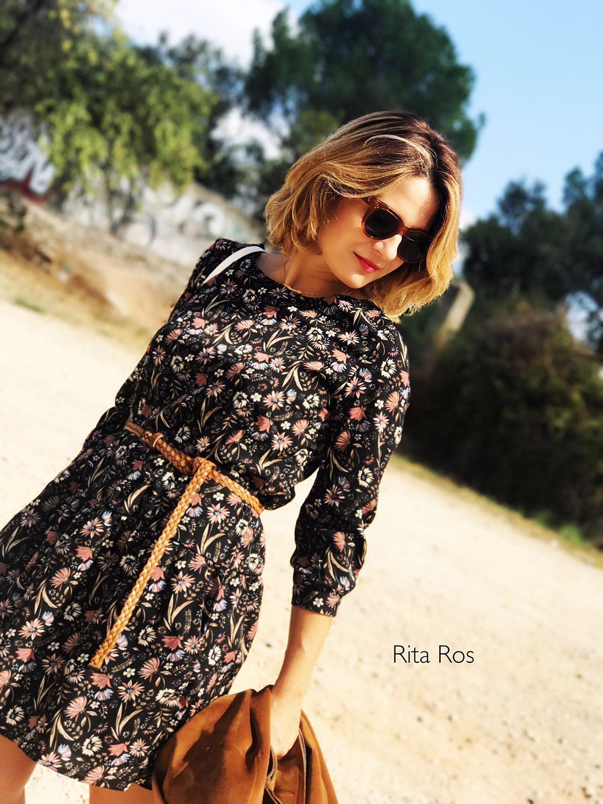 Vestido Flores Negro Flores Marrones ( Ref.1072)