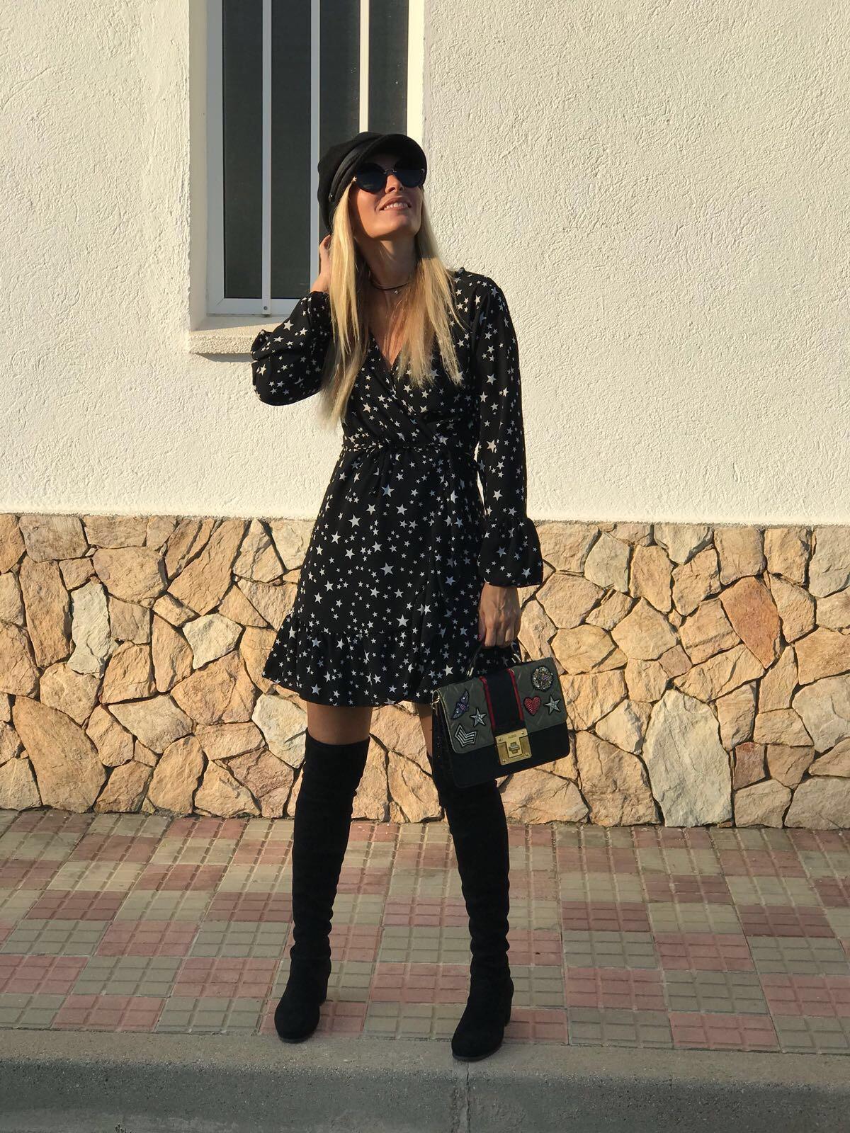 Nuevo vestido en crepé corto de estilo cruzado y con un estampado de estrellitas que es una cucada!!