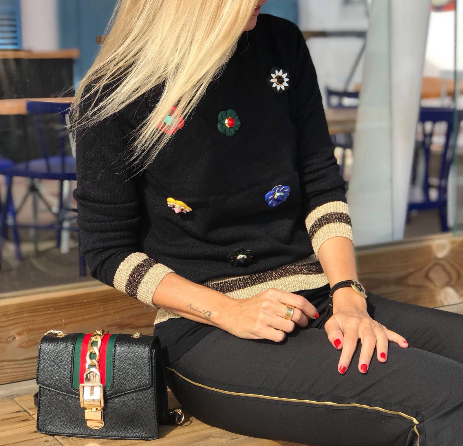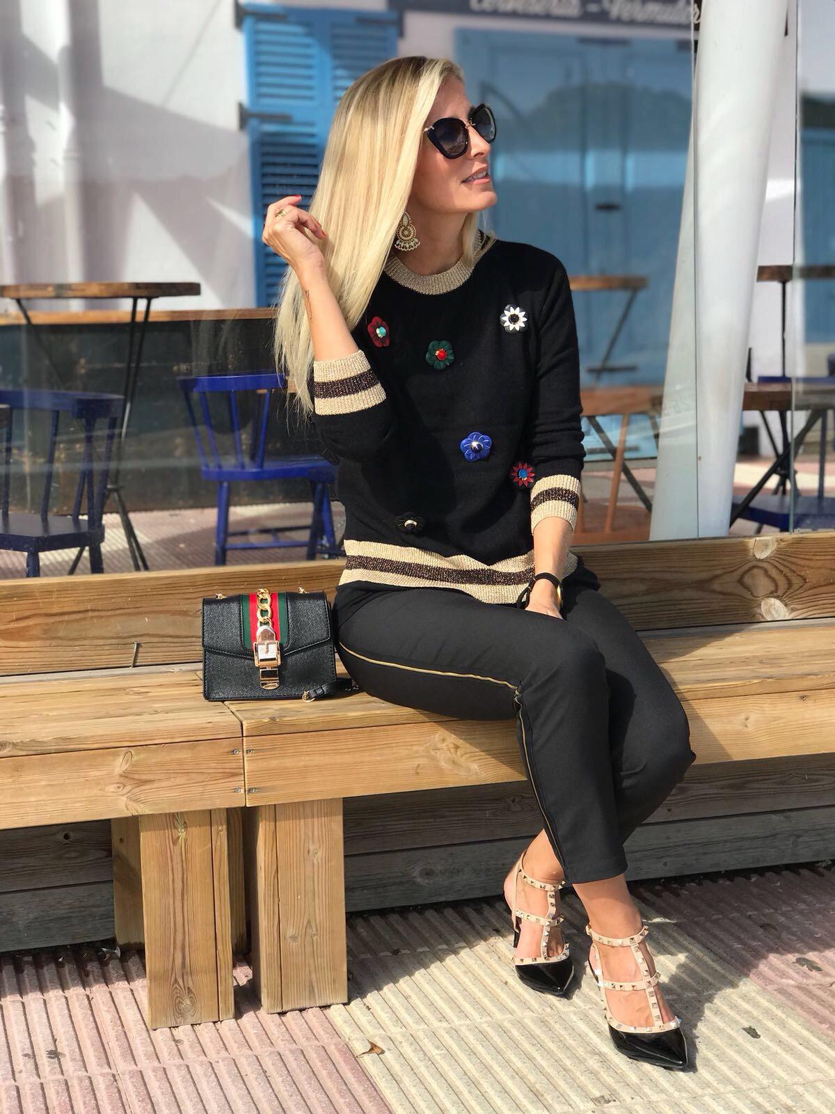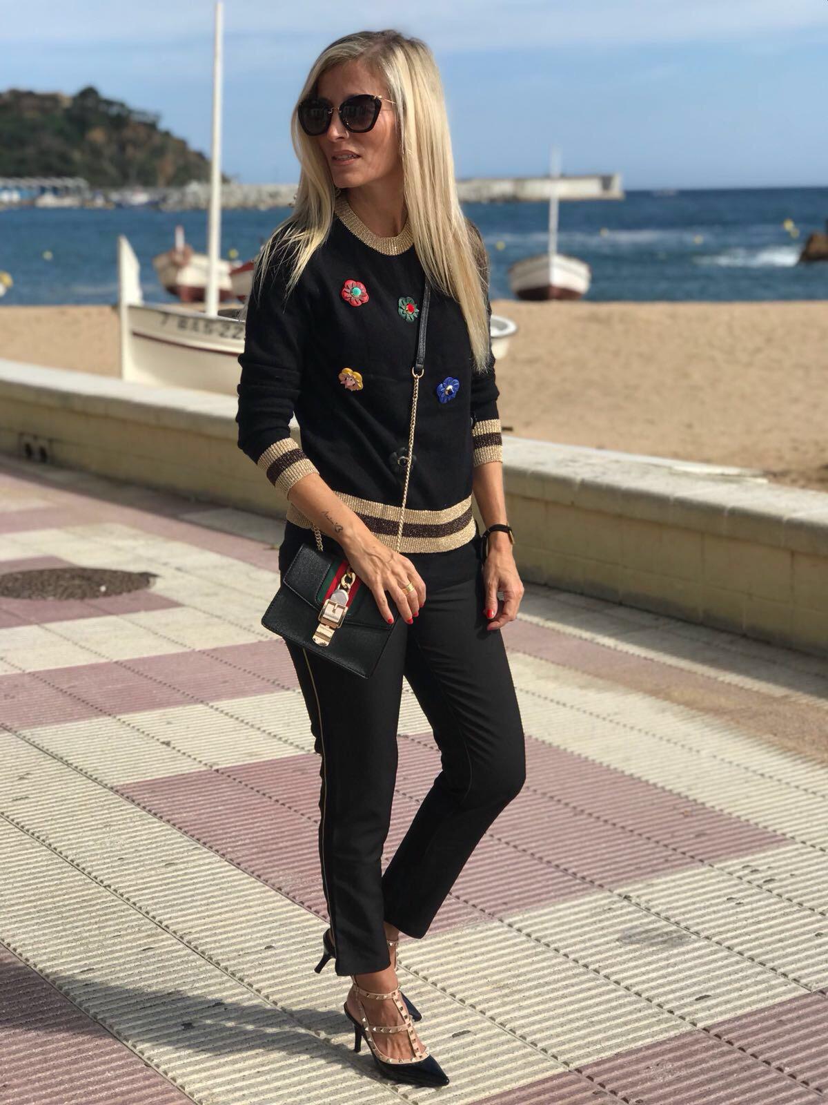 Precioso pantalón negro con detalle raya dorada en el lateral que alargan las piernas y estiliza la figura.