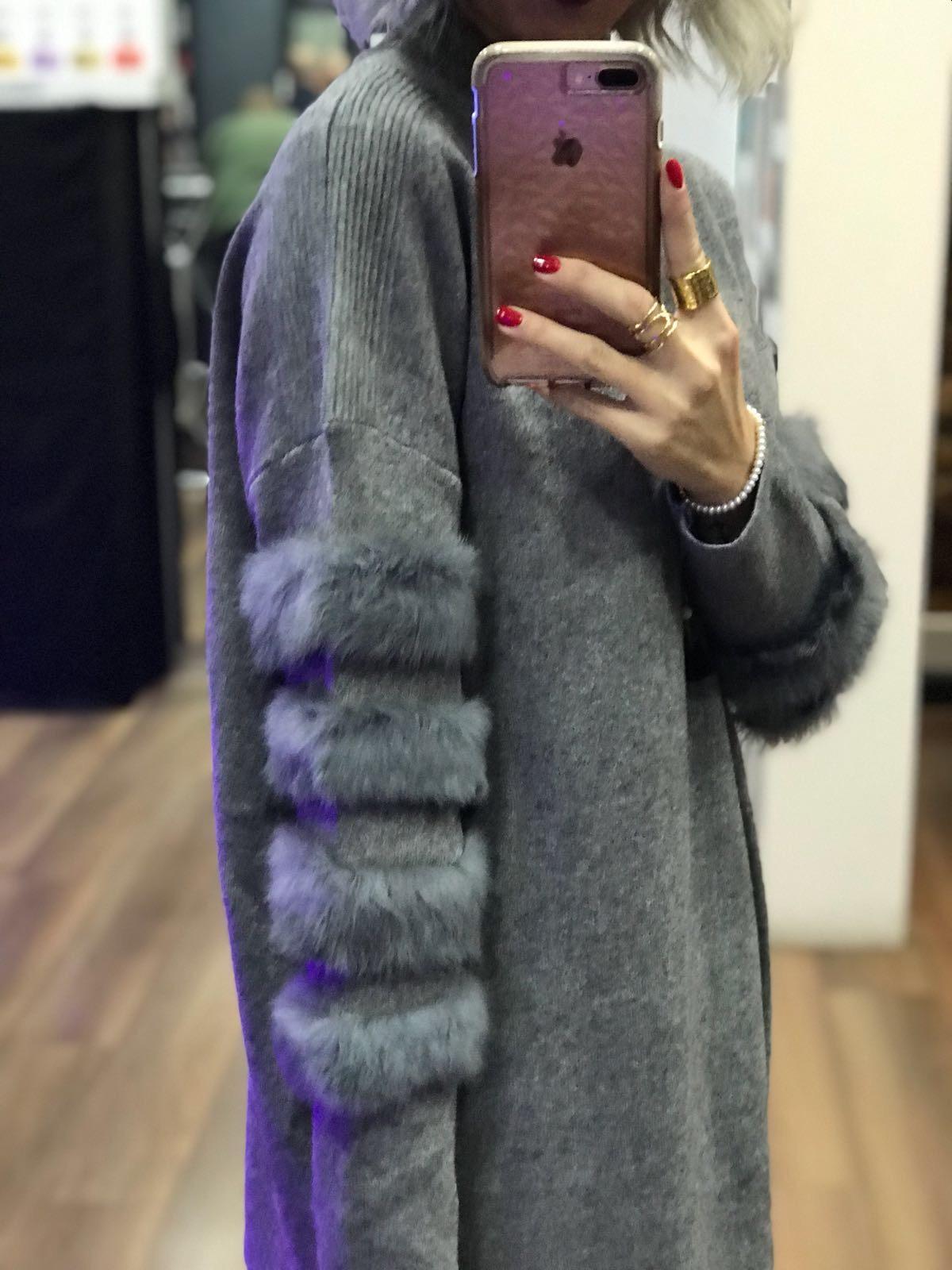 Precioso jersey con un tejido super bonito, con un poco de elástico y detalle de pelo natural de conejo en las mangas.