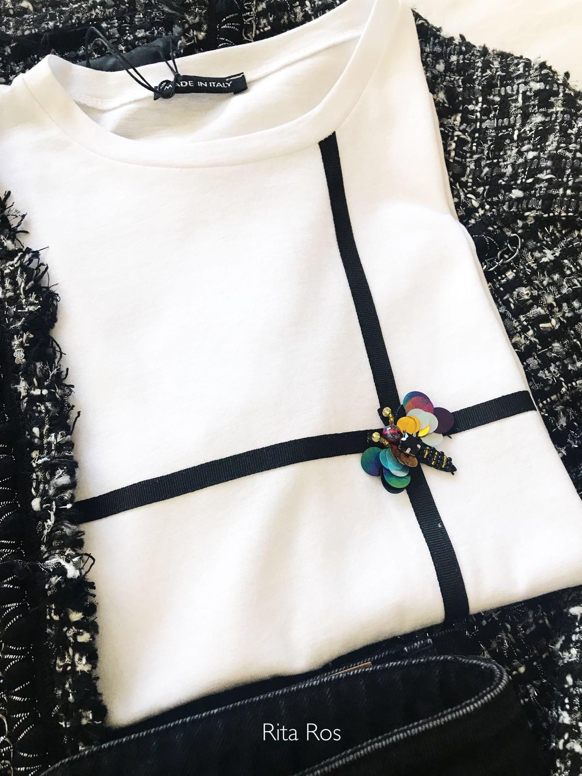 Una monada de camiseta en manga corta con precioso detalle de abeja en pedrería.