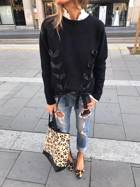 Una monada de jersey en tejido de punto con un romántico detalle de lazos!!