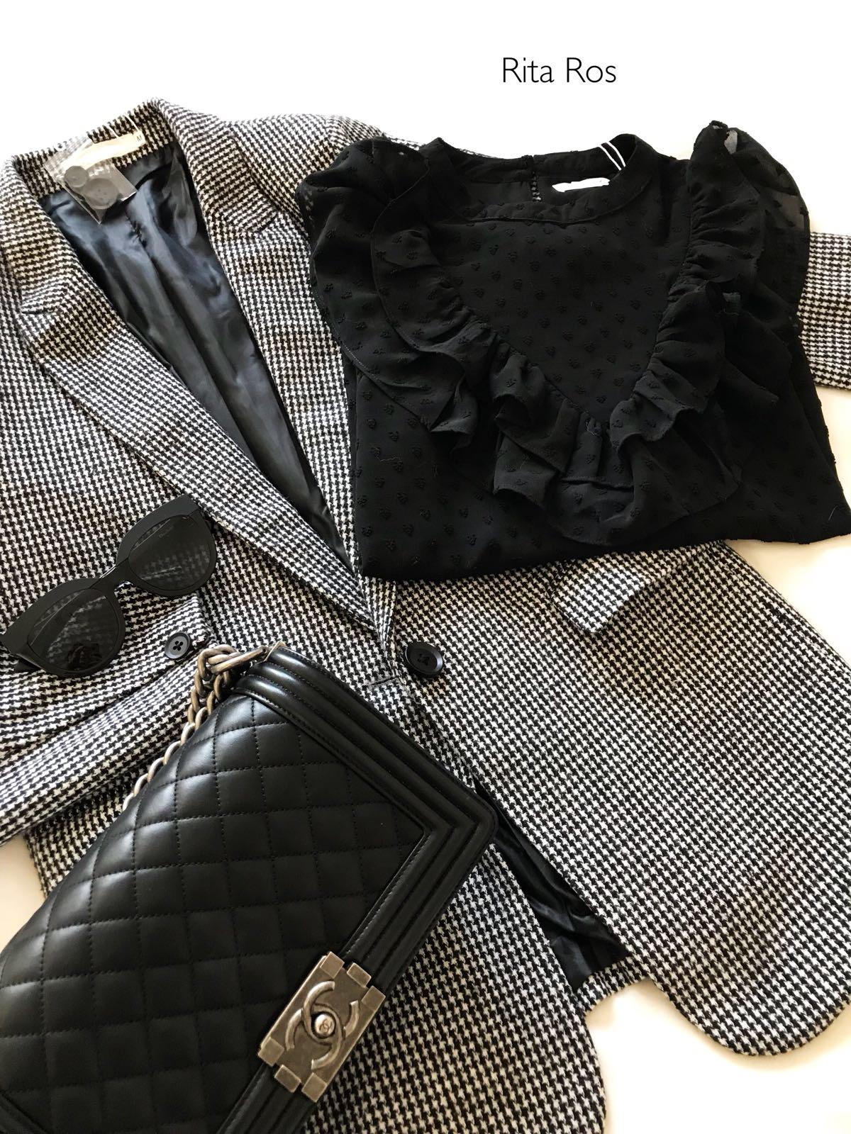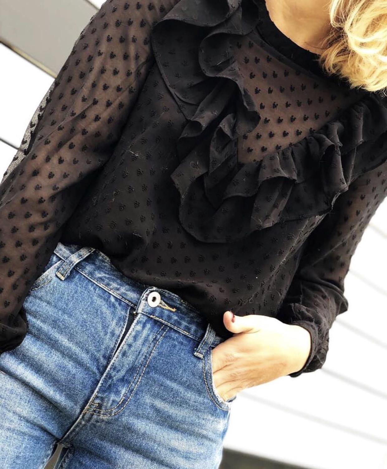 Una preciosidad de blusa con estampado de corazones y doble volante. Una cucada de blusa con mucho encanto. Ideal para combinar con nuestra americana nueva de cuadro Vichy.