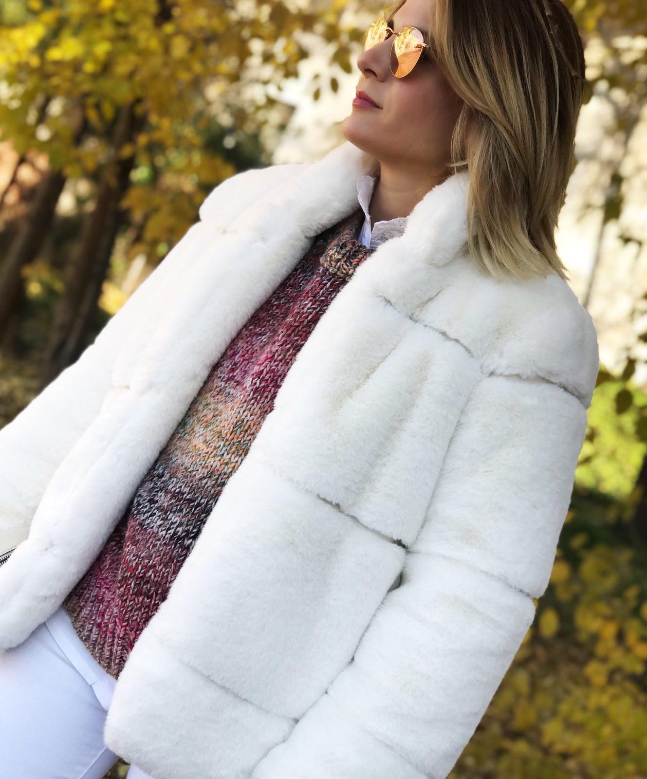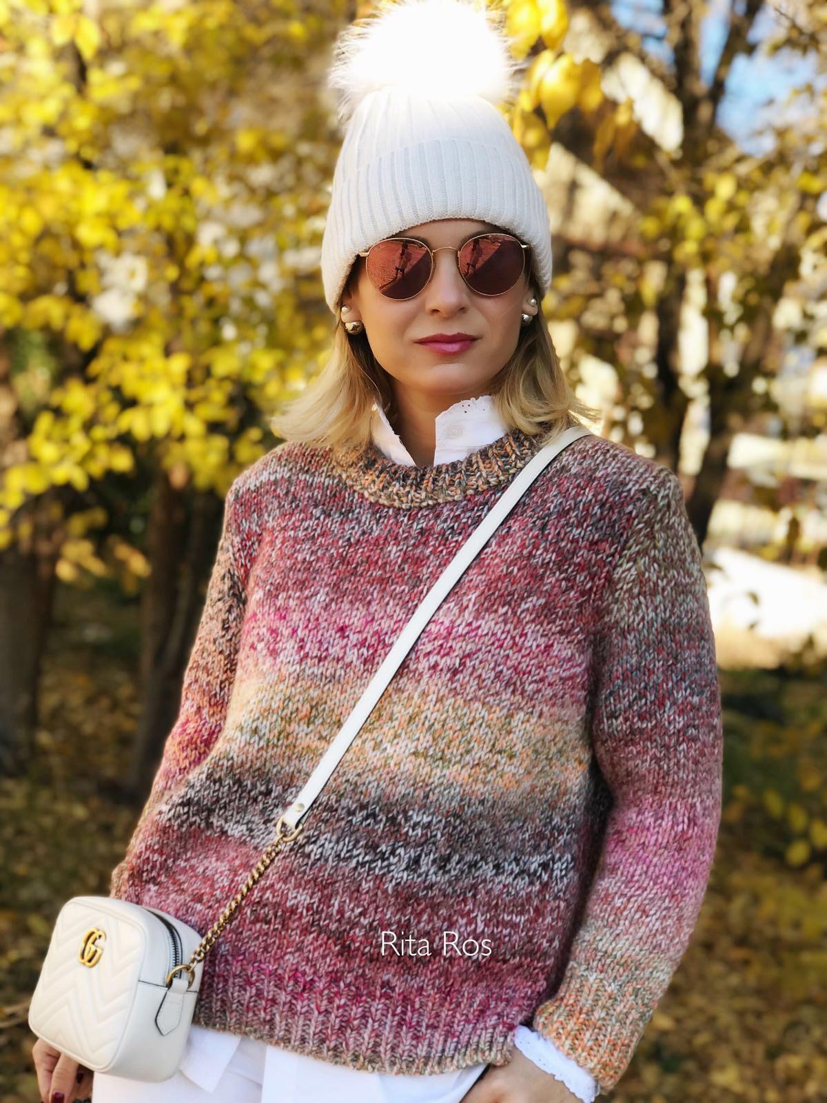 Nuevo jersey de punto jaspeado en tonos rosas súper bonito. Lo hemos combinado con nuestro gorrito maxipompón en blanco y la combinación queda genial.