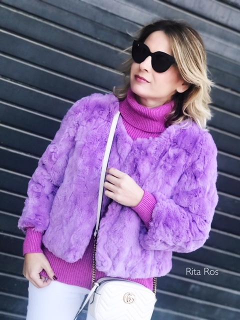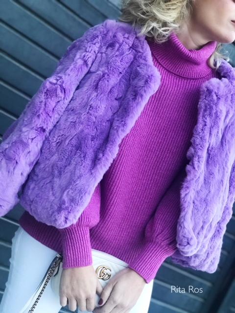 Jersey de punto de canalé con cuello alto y detalle precioso de mangas abullonadas.