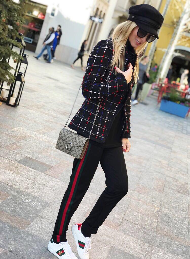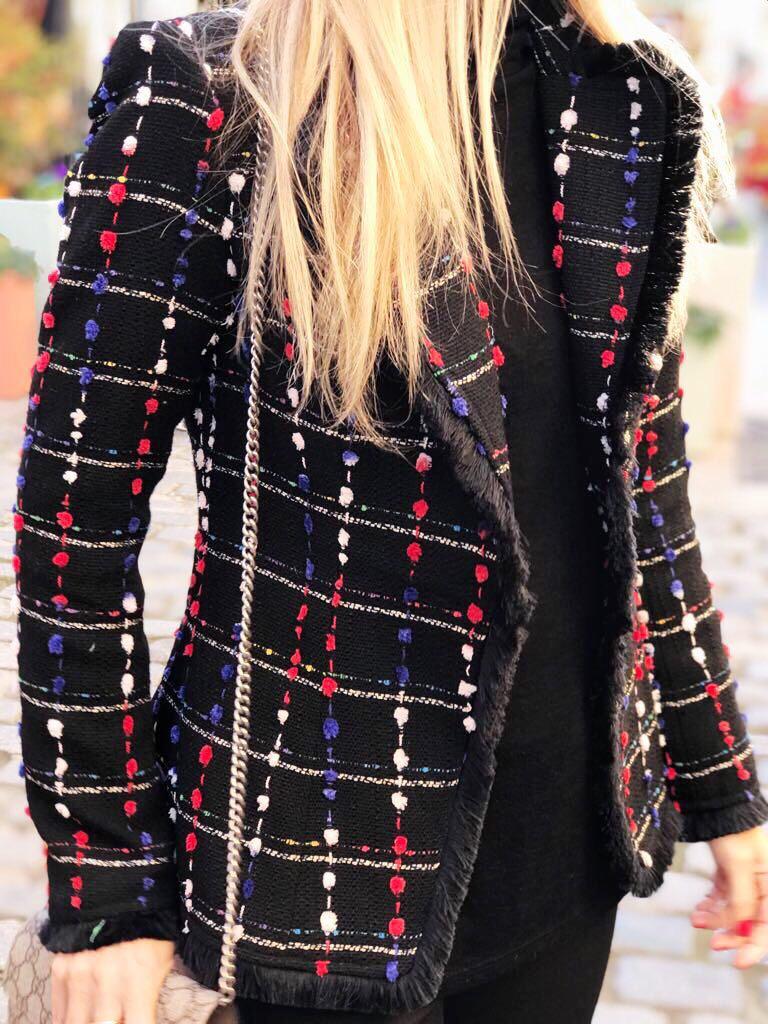 Una maravilla de americana en tejido Tweed con un estampado de colores precioso sobre fondo negro o blanco roto.