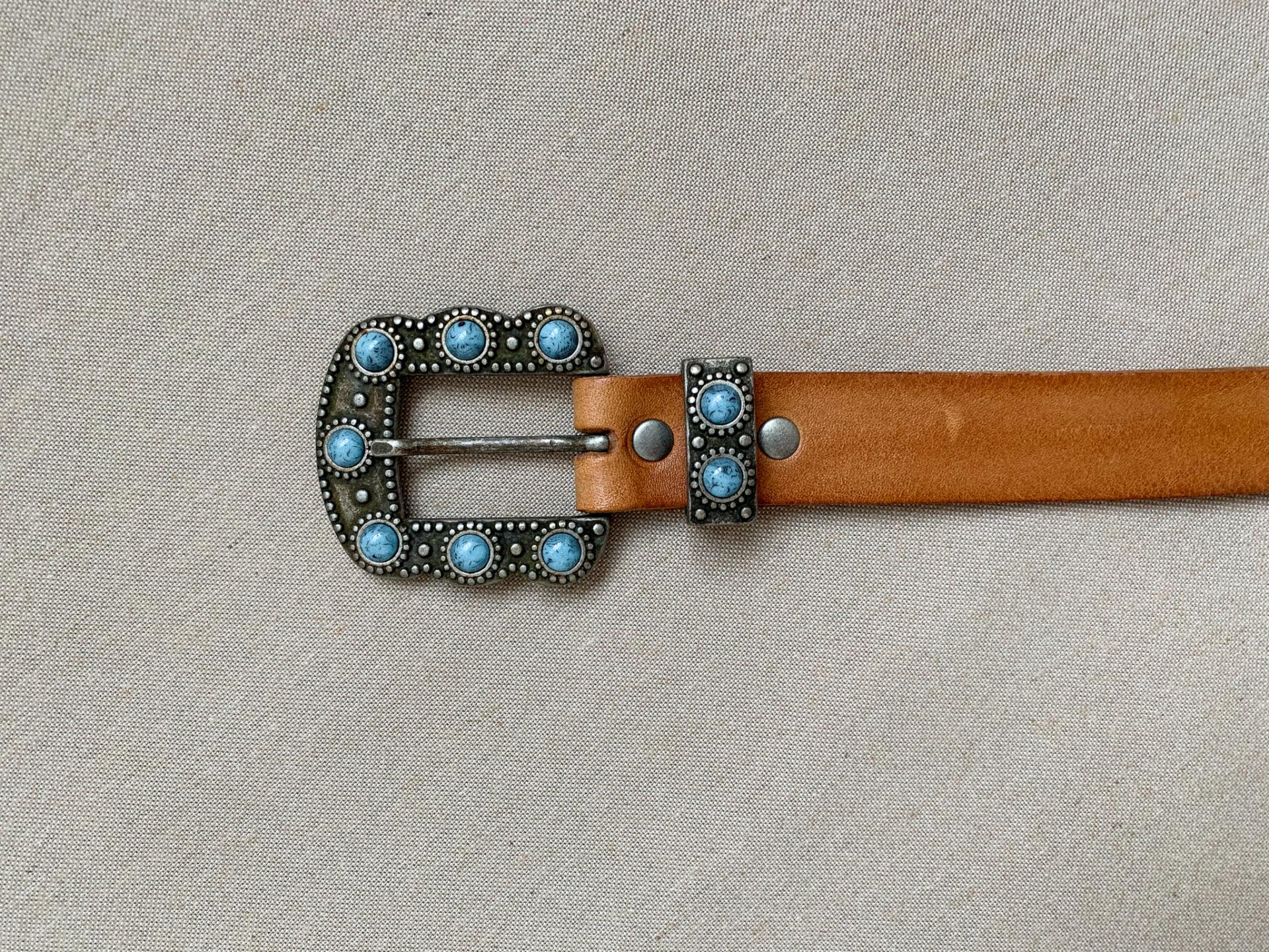 Una monada de cinturón 100% piel en color marrón con hebilla decorativa en color.