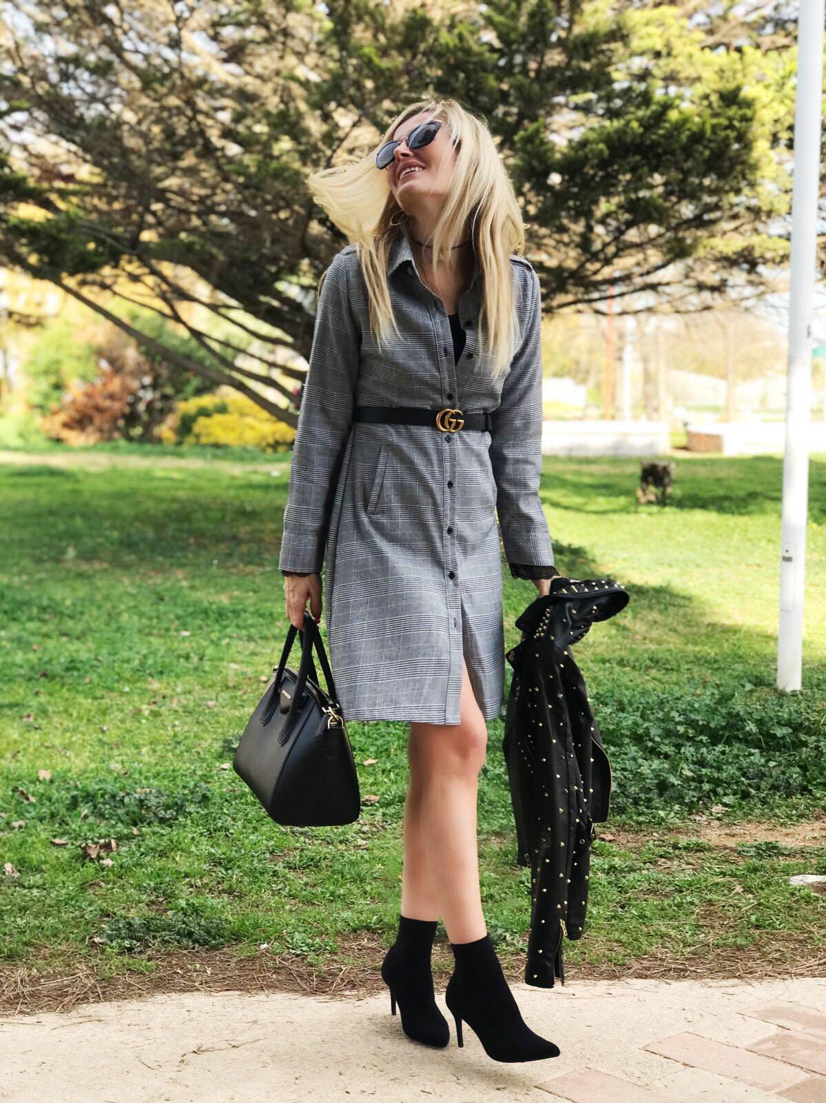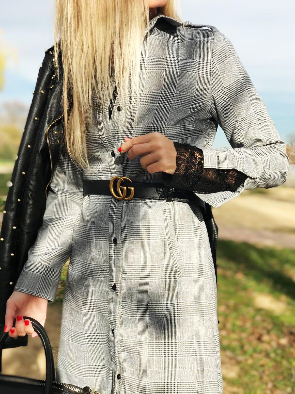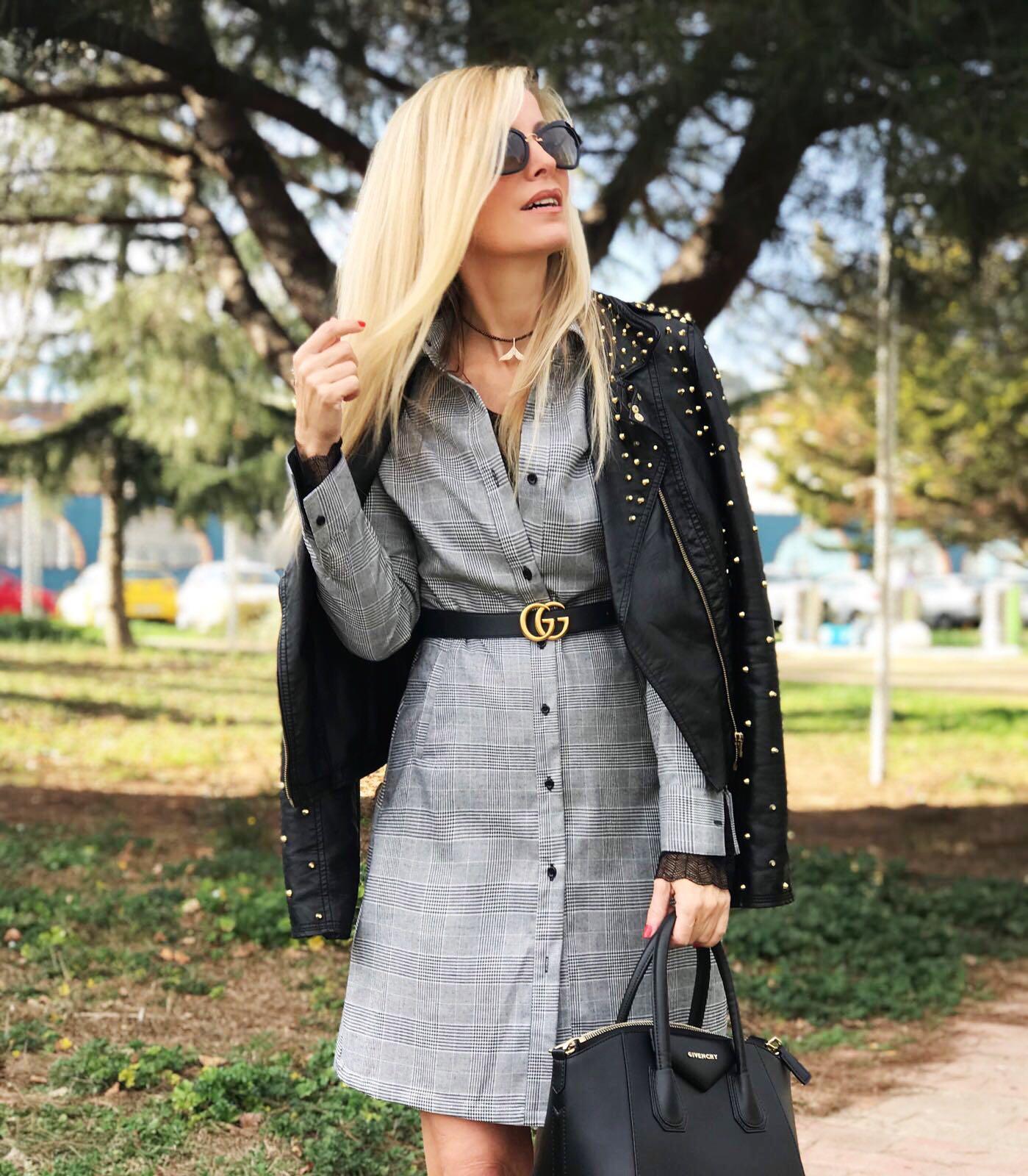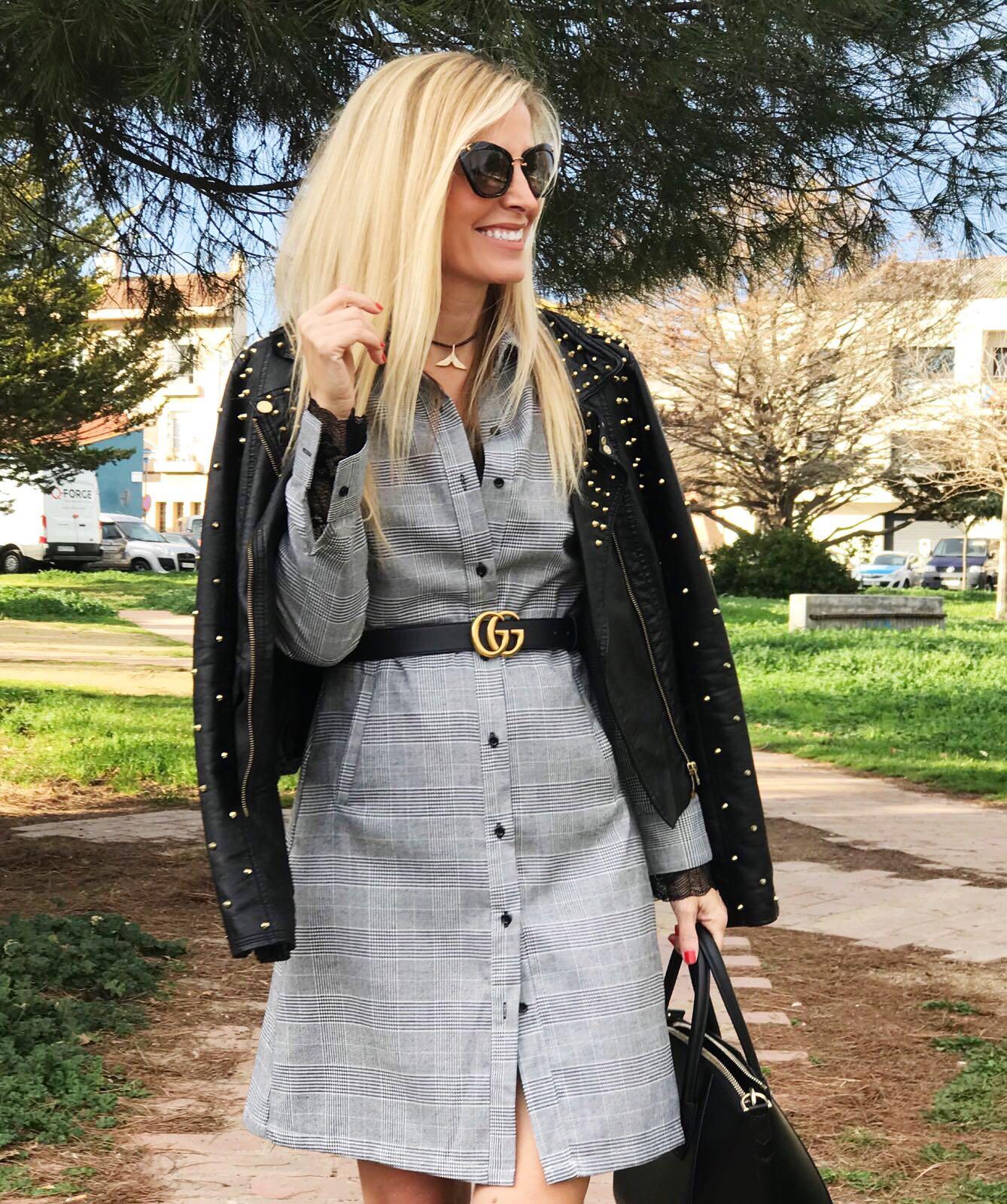 Elegante vestido camisero con estampado de Gales con una forma que estiliza un montón. Va abotonado e incluye dos bolsillos laterales.