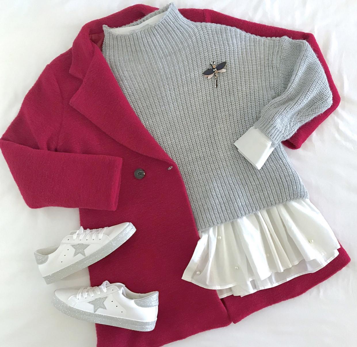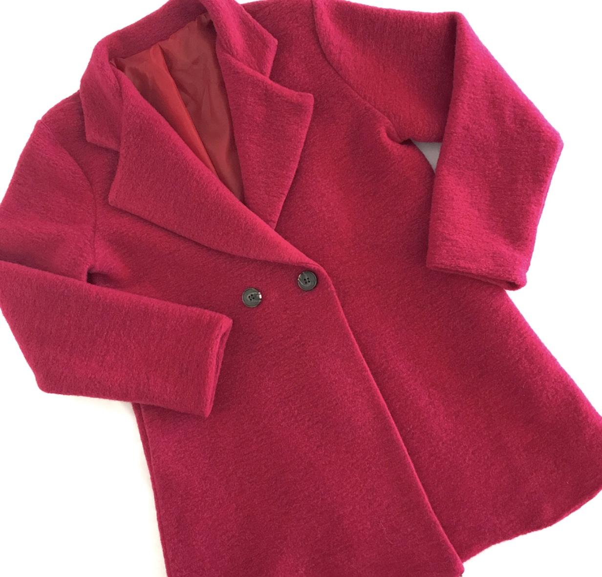 Precioso abrigo 3/4 en tejido grueso con lana mezclada. Modelo cruzado con solapas y botones delante, bolsillos invisibles en las costuras laterales.