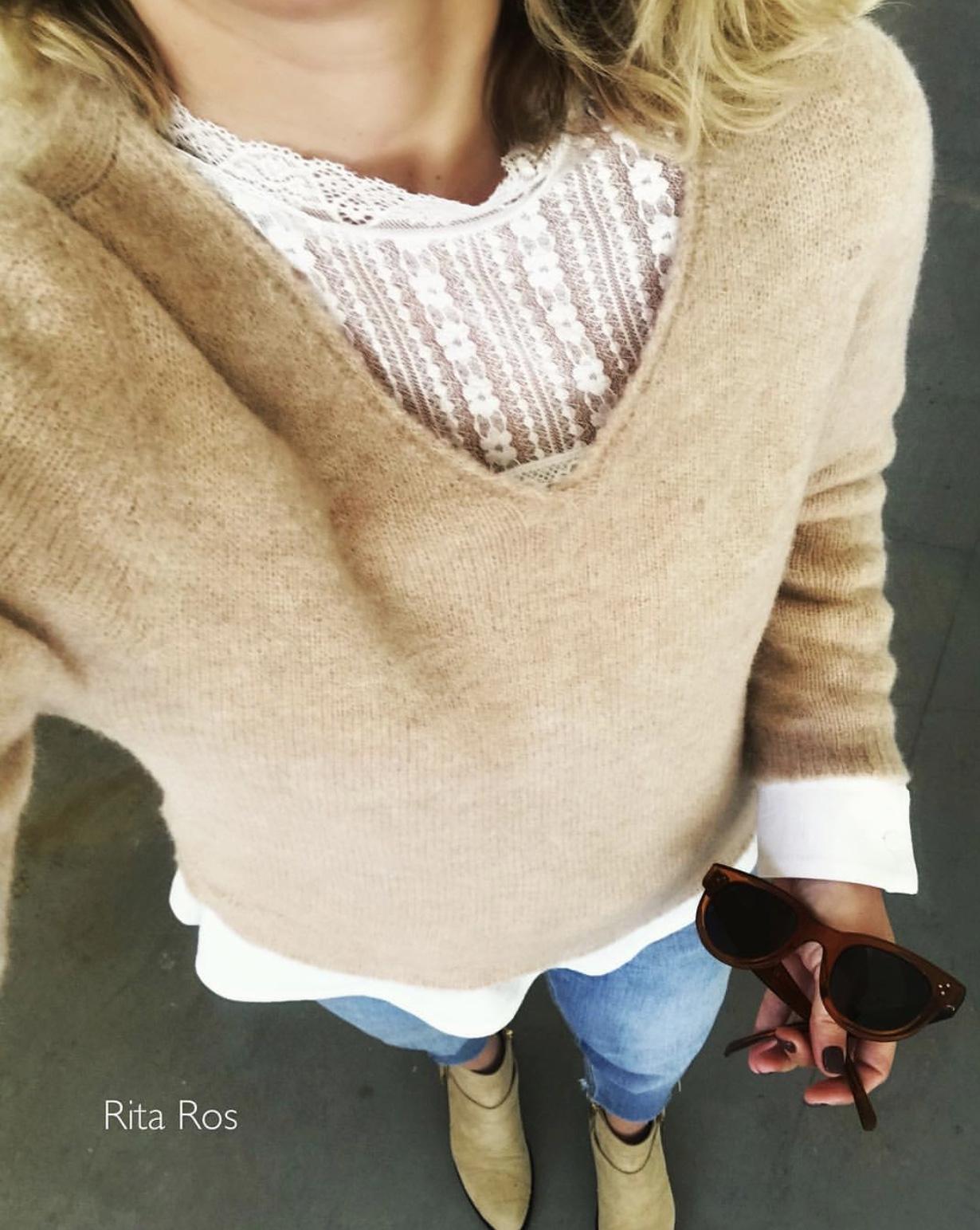 Una monada de jersey con cuello de pico con un tejido genial. Es súper cómodo y calentito.