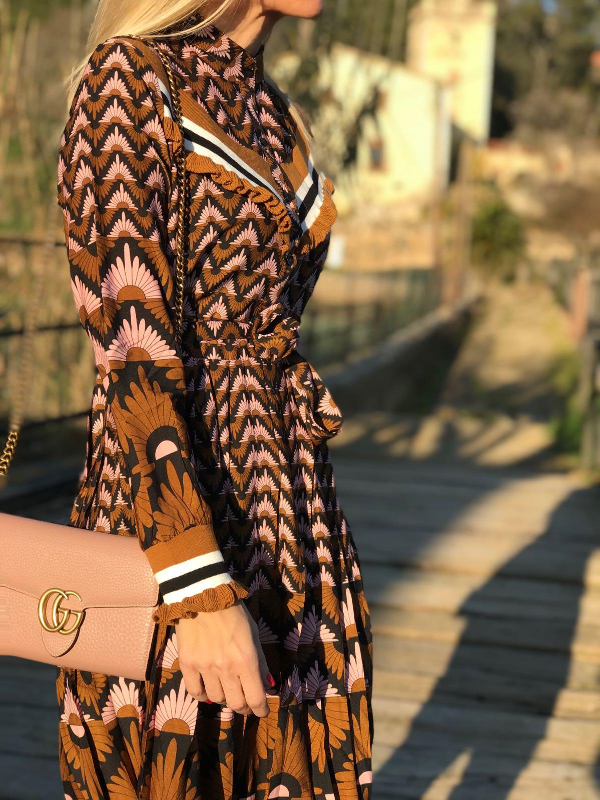 Una maravilla de vestido largo con un estampado precioso, lleno de detalles increíbles. Puños y detalle en escote acabados en punto.