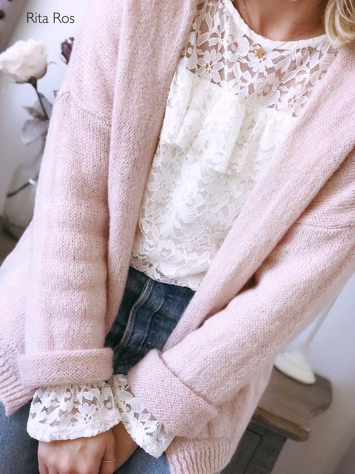 La hemos combinado con la chaqueta de mohair rosa y la combinación es preciosa!