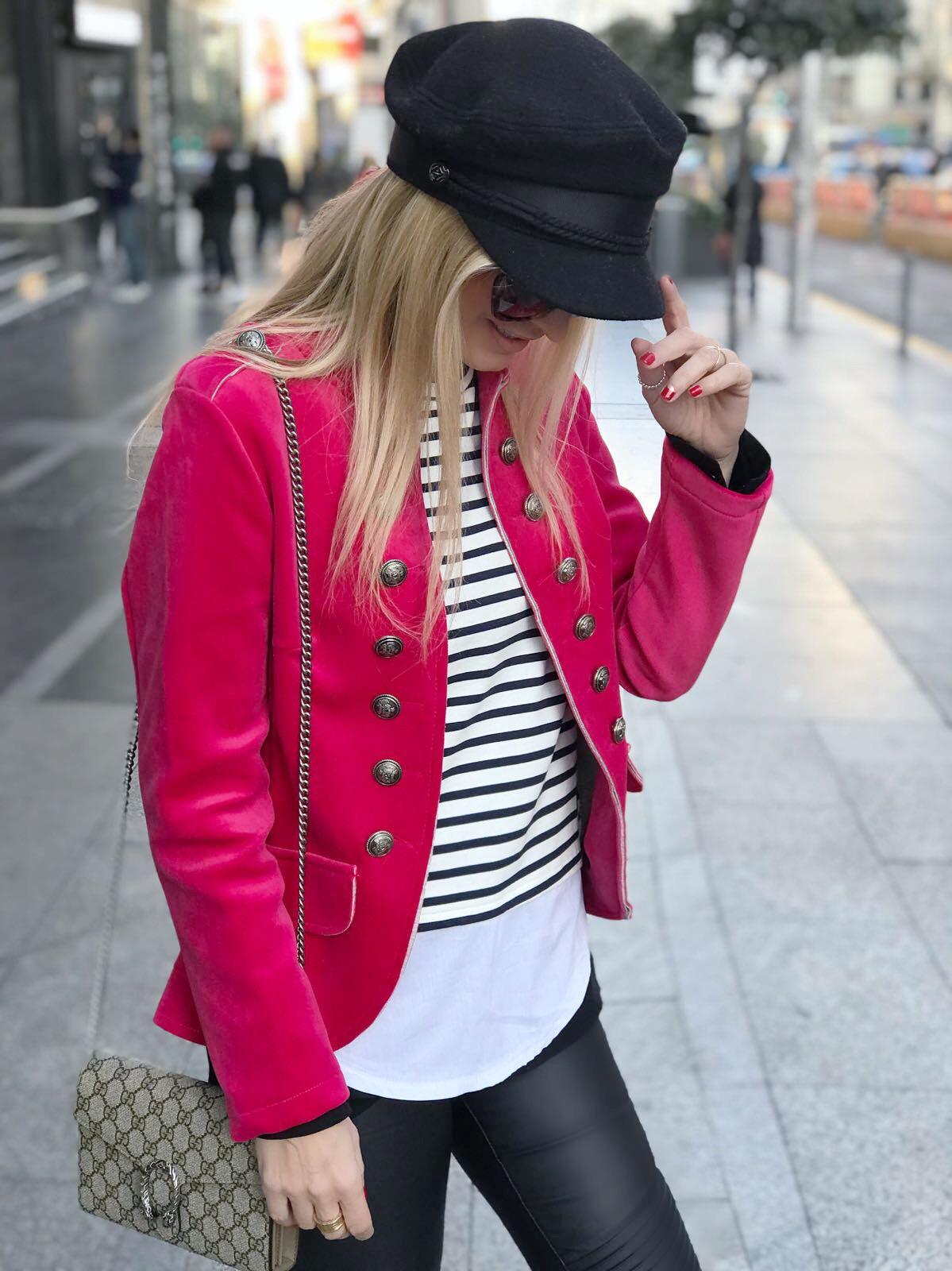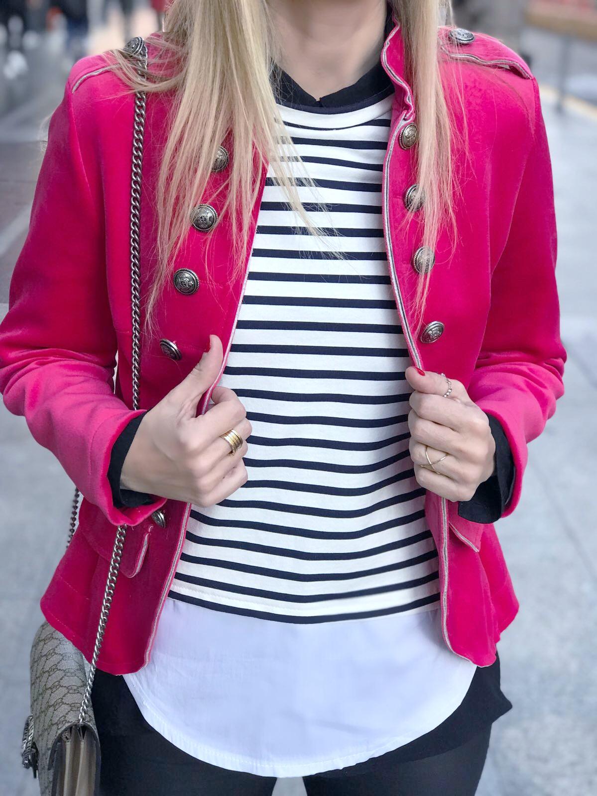 Una cucada de americana de terciopelo de estilo militar. Una aliada perfecta que sigue de tendencia este invierno.