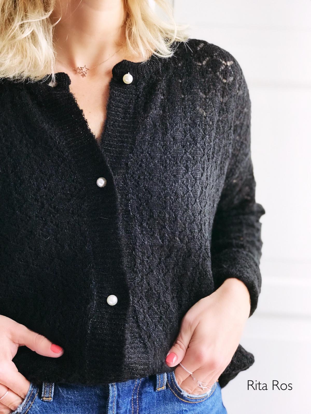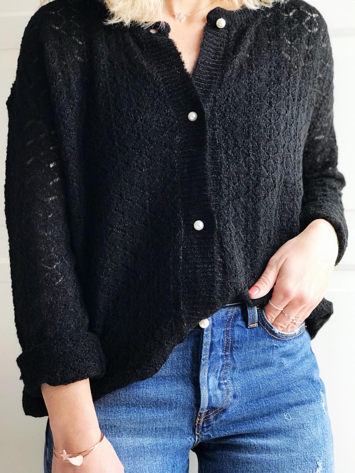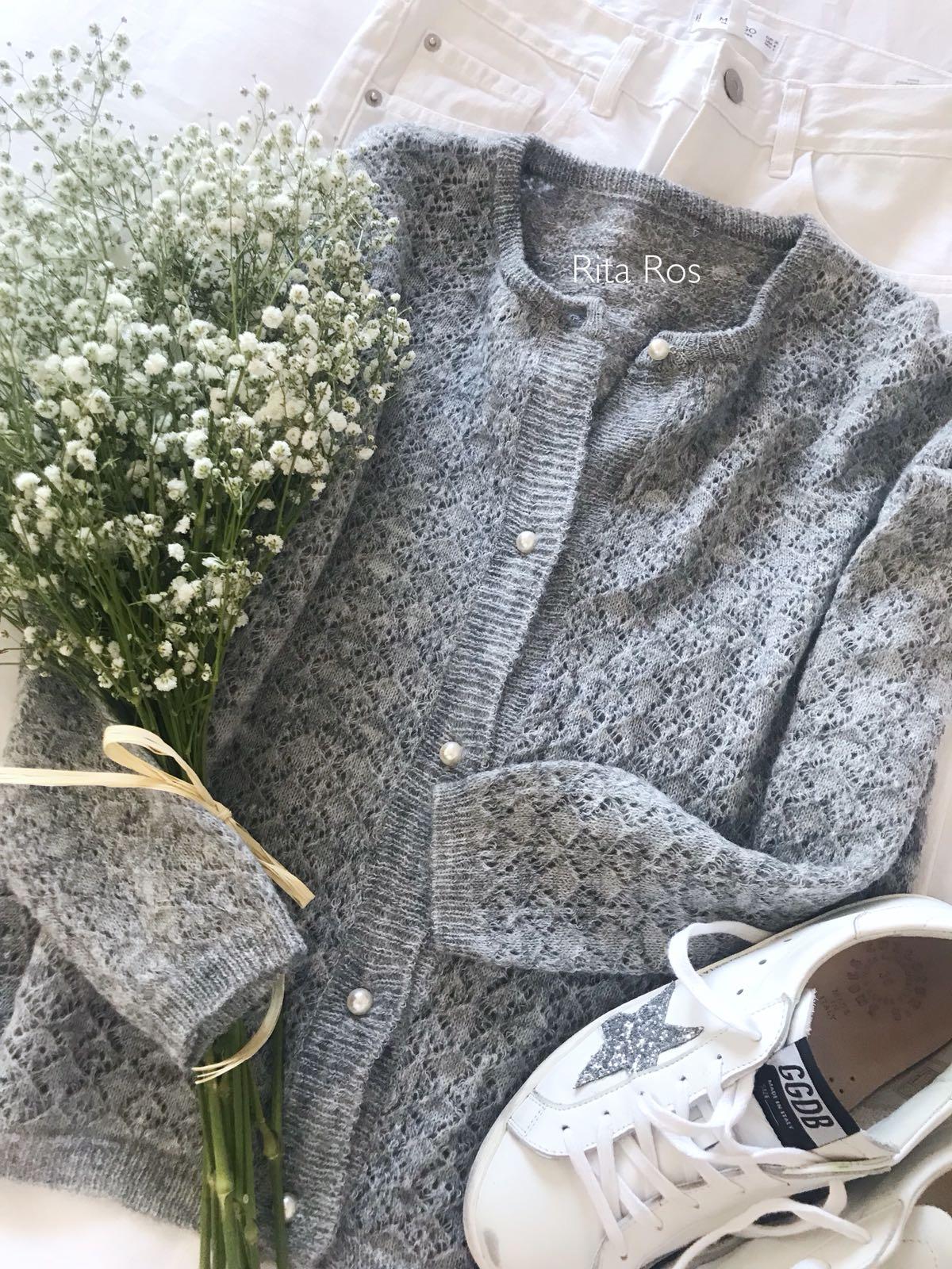 Una monada de chaqueta en punto calado, con detalle de botones de perlas. Perfecta también para llevarla a modo jersey, con una básica debajo y vaqueros.
