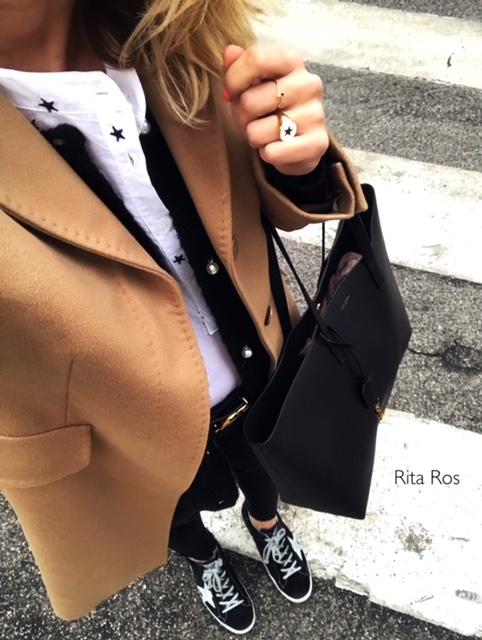 Nueva blusa de manga larga y cuello mao con detalle de estrellas bordadas en negro.