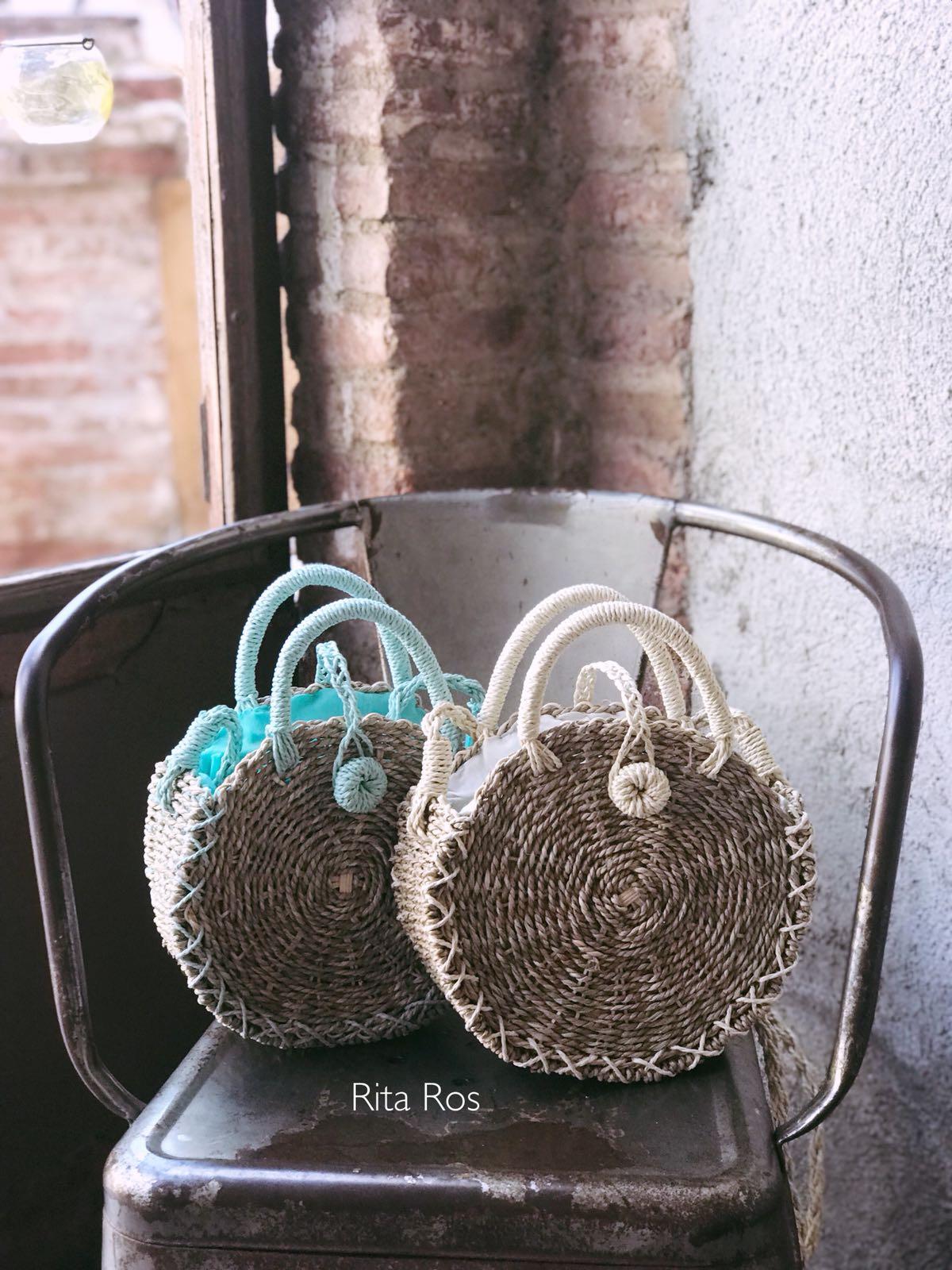 Bolso de rafia redondo pequeño para llevar de mano o bandolera. Un bolso muy versátil que podrás llevar en cualquier momento del día.