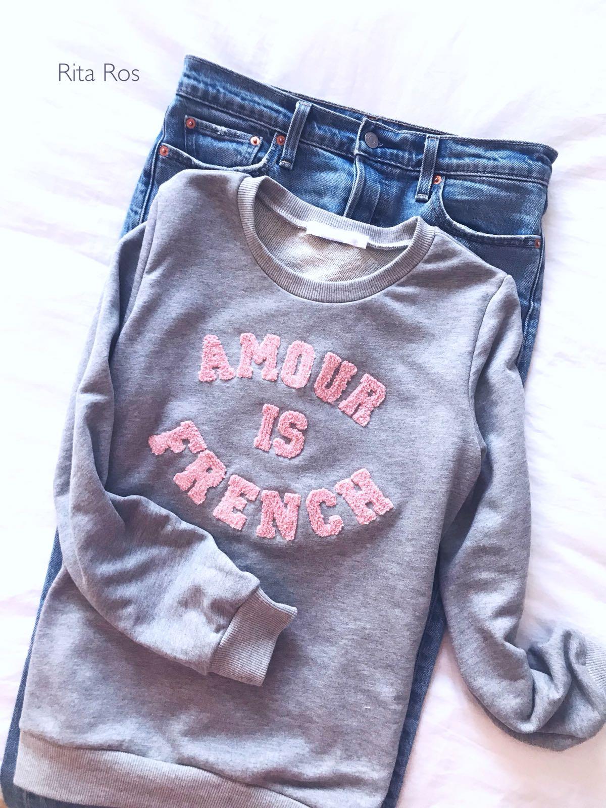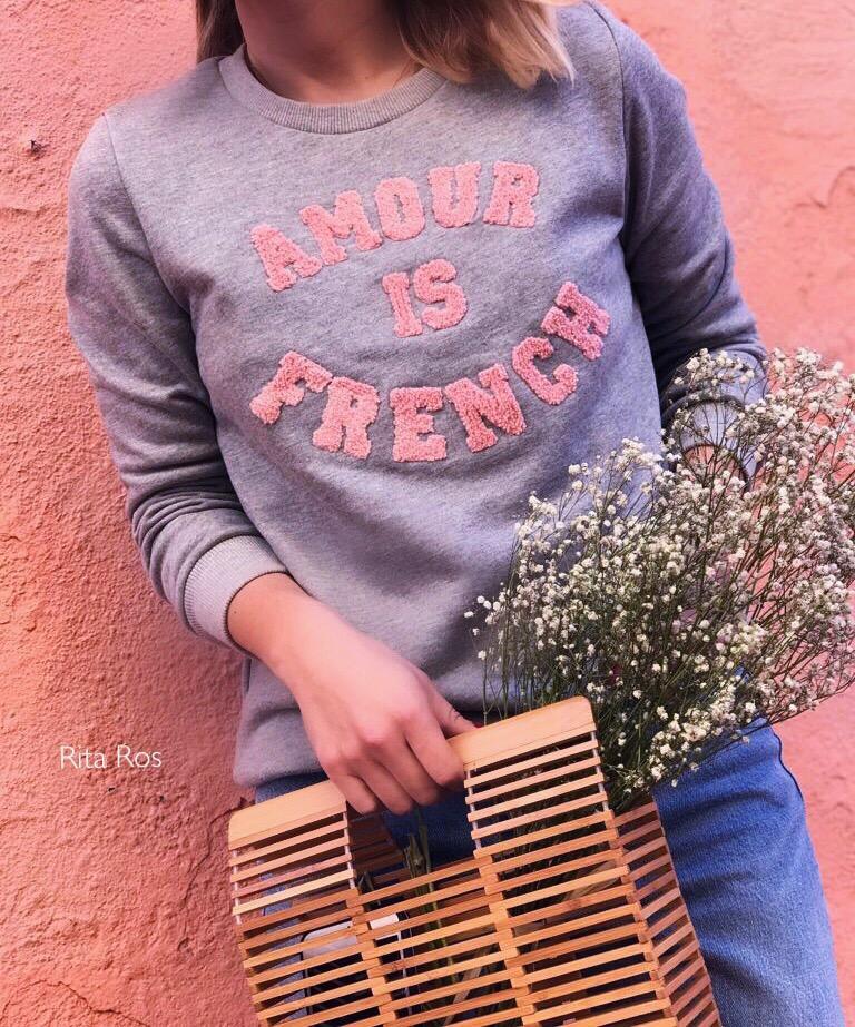 Jersey/sudadera de manga larga y cuello redondo con detalle letras "AMOUR IS FRENCH". Dale un toque informal con mucho encanto a tus looks.
