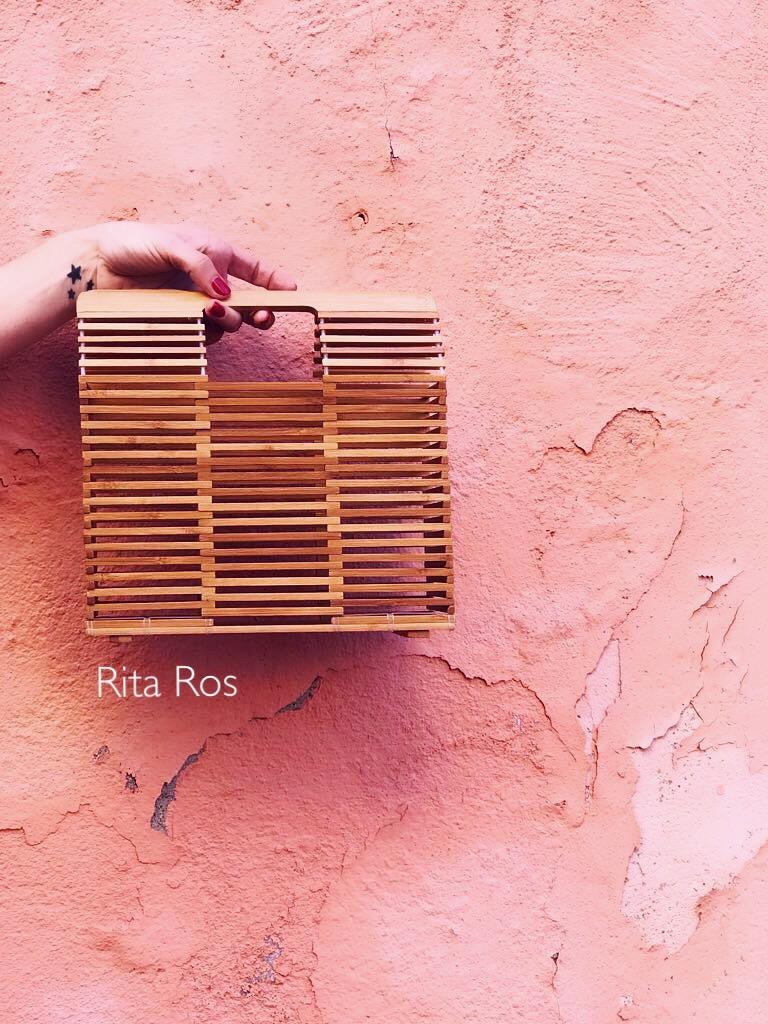Bolso de mano de bambú, estilo japonés en forma cuadrada.
