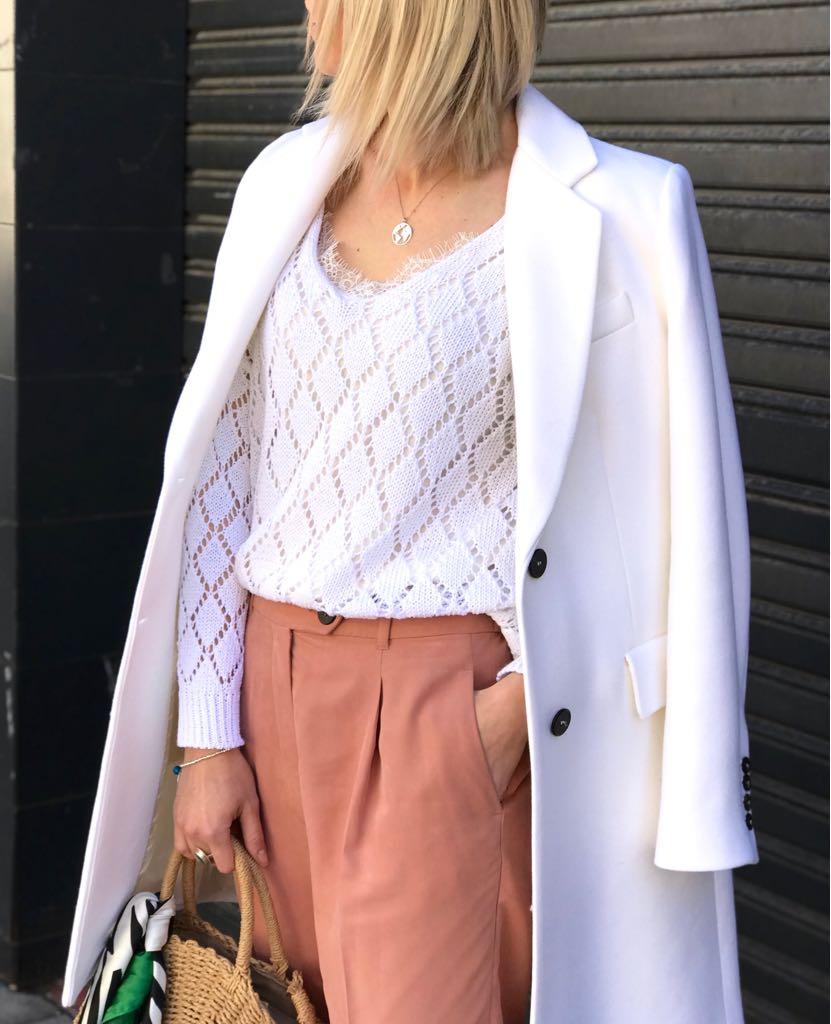 Jersey de punto calado manga larga y cuello de pico. Básicos súper combinables ideales para entretiempo.