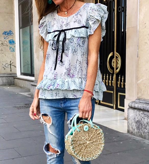 Volantes en hombros, frontal y bajo.
