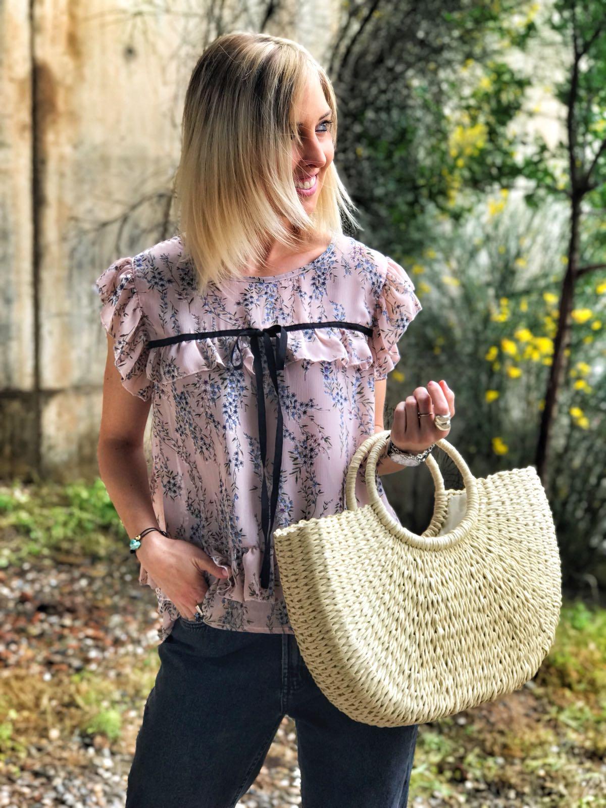 Blusa de tejido tipo gasa estampada de flores, sin manga y con detalle lazo en color negro. Una blusa con mucho encanto que podrás combinar con unos vaqueros, la combinación es perfecta.