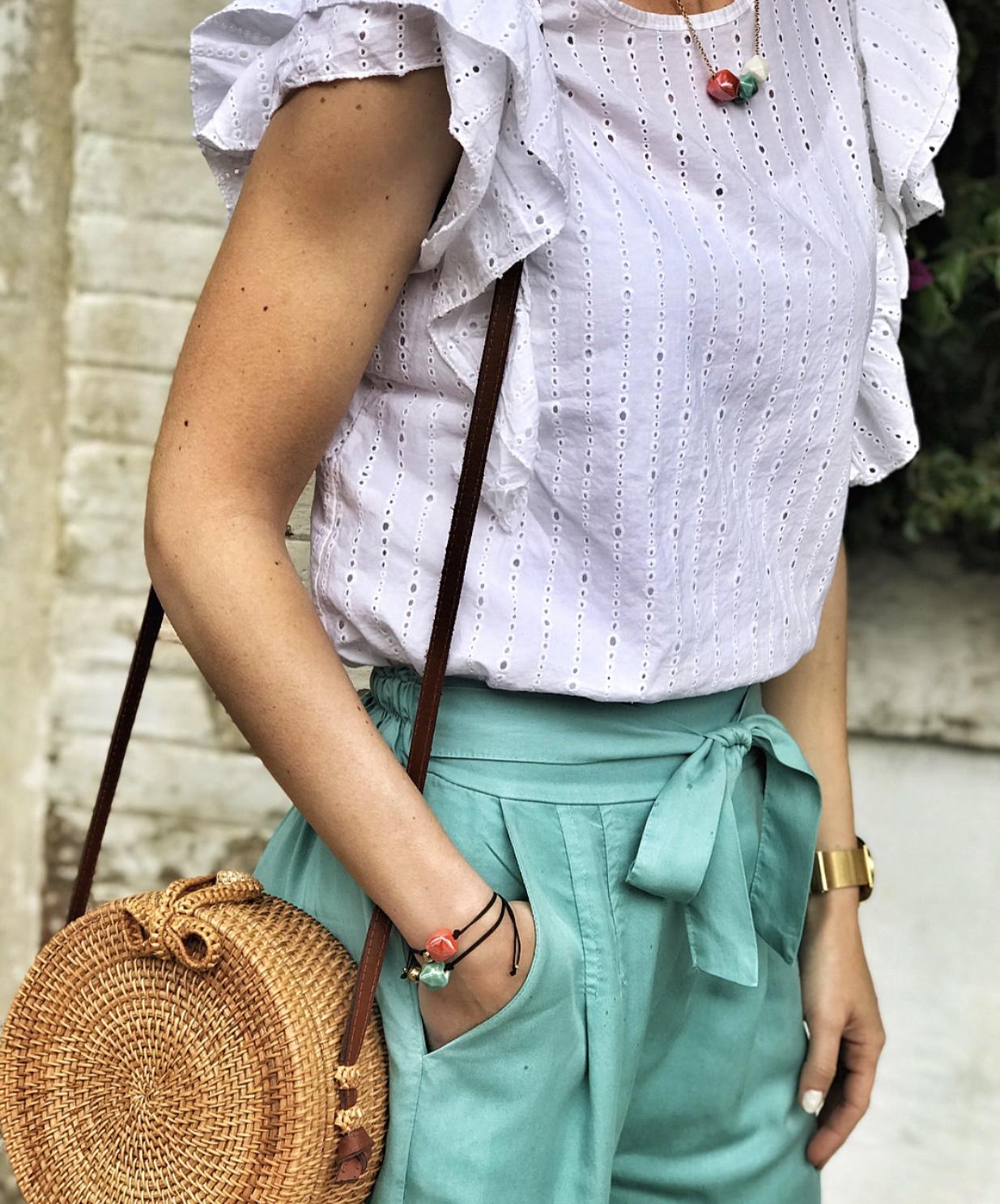 Pantalón fluido ancho de tiro alto. Lo hemos combinado con nuestra blusa blanca Anna de tejido troquelado y queda un look genial!
