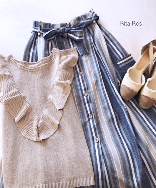 Falda de lino larga estampada de rayas. La hemos combinado con nuestro jersey Sahara y queda una combinación perfecta.